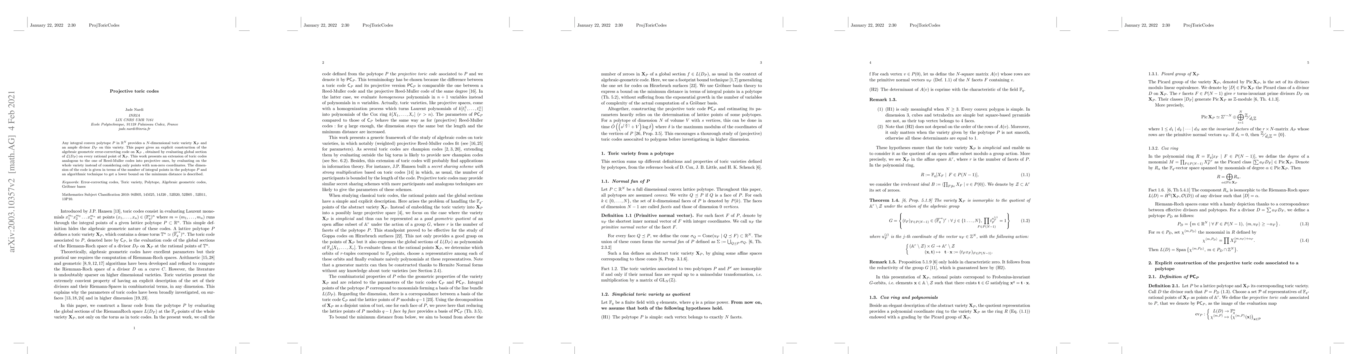 Any integral convex polytope $P$ in $\mathbb{R}^N$ provides a $N$-dimensional toric variety $X_P$ and an ample divisor $D_P$ on this variety. This paper gives an explicit construction of the algebraic geometric error-correcting code on $X_P$ , obtained by evaluating global section of $\mathcal{L}(D_P)$ on every rational point of $X_P$. This work presents an extension of toric codes analogous to the one of Reed-Muller codes into projective ones, by evaluating on the whole variety instead of considering only points with non-zero coordinates. The dimension of the code is given in terms of the number of integral points in the polytope $P$ and an algorithmic technique to get a lowerbound on the minimum distance is described.