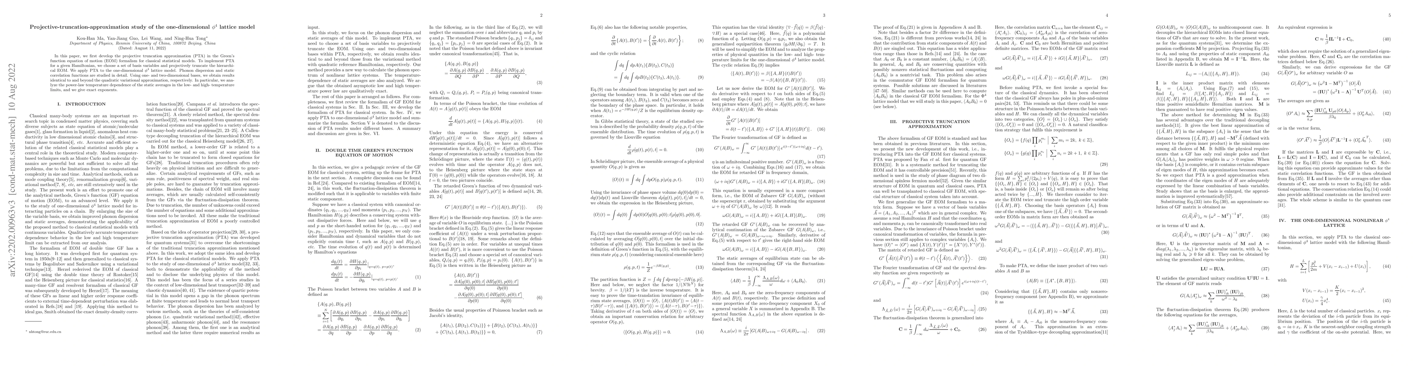This paper develops the projective truncation approximation (PTA) within the Green's function equation of motion formalism for classical statistical models, applying it to the one-dimensional $\phi^4$ lattice model. PTA provides accurate phonon dispersion and static correlation functions, with exact exponents for the power-law temperature dependence in both low- and high-temperature limits.