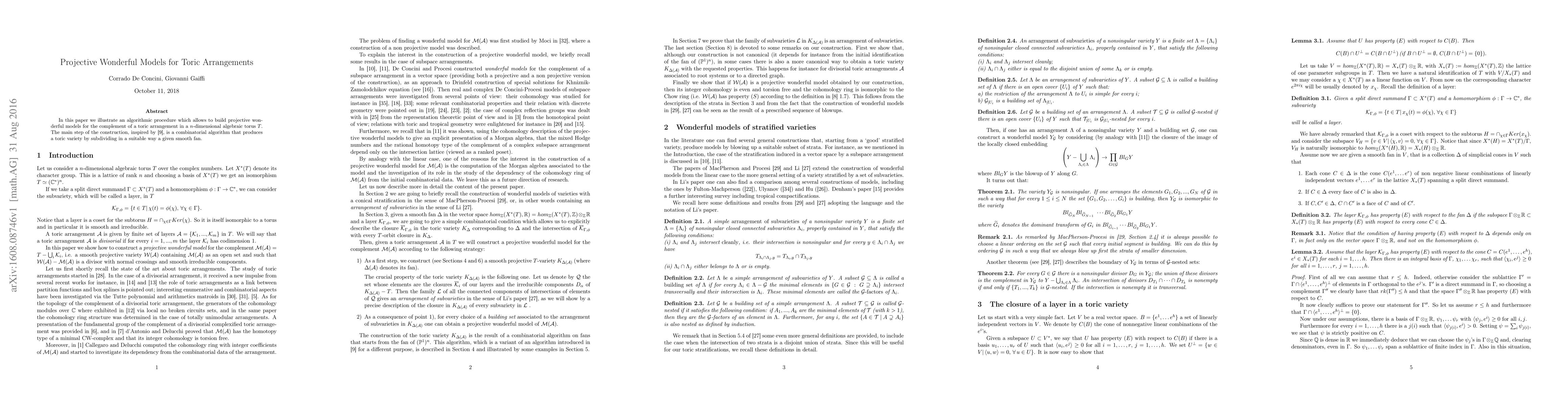 This paper presents an algorithmic procedure for constructing projective wonderful models for the complement of toric arrangements within an n-dimensional algebraic torus. The core method involves a combinatorial algorithm that subdivides a smooth fan to create a toric variety.