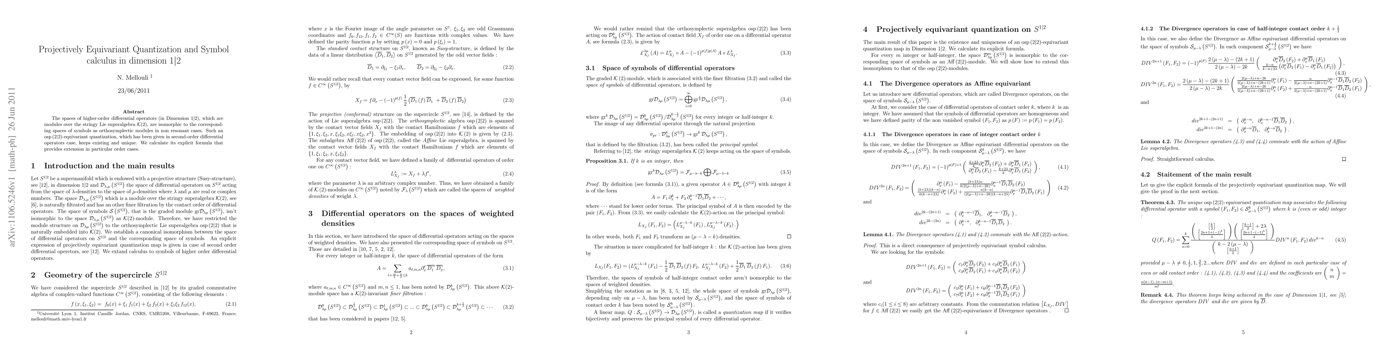 The research establishes an isomorphism between spaces of higher-order differential operators in dimension 1|2 and corresponding symbol spaces as orthosymplectic modules, in non-resonant cases. It presents a unique, projectively equivariant quantization under the stringy Lie superalgebra K(2), providing explicit formulas for particular order cases.