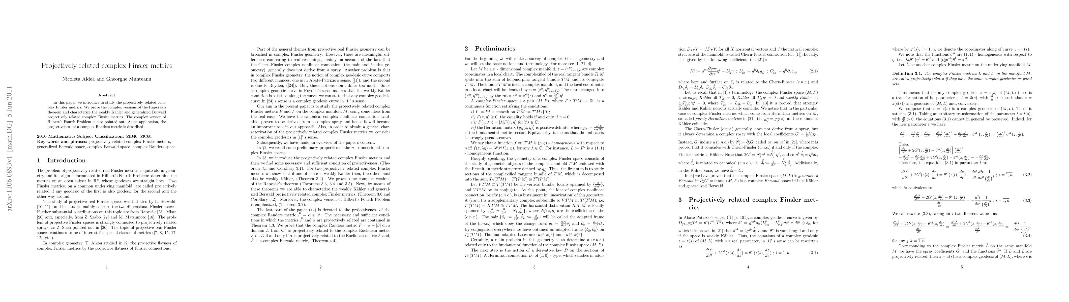 The paper presents new theorems and characterizations regarding projectively related complex Finsler metrics, extending previous work on Finsler geometry.
