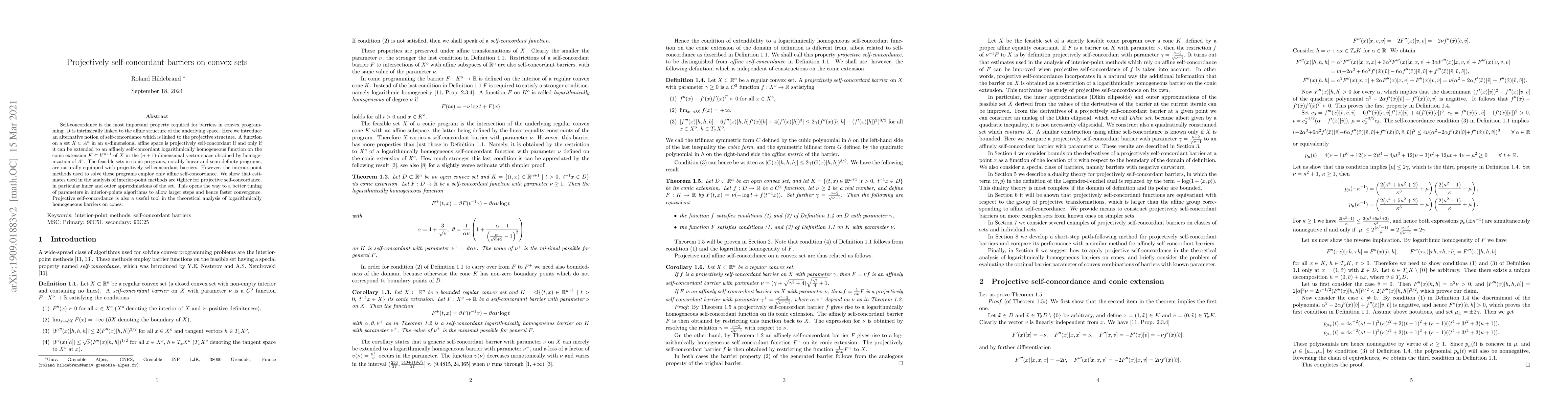 This paper introduces projective self-concordance as an alternative to affine self-concordance for barriers in convex programming, showing that it leads to tighter estimates in the analysis of interior-point methods. It suggests that projective self-concordance can enable faster convergence and better parameter tuning in algorithms.