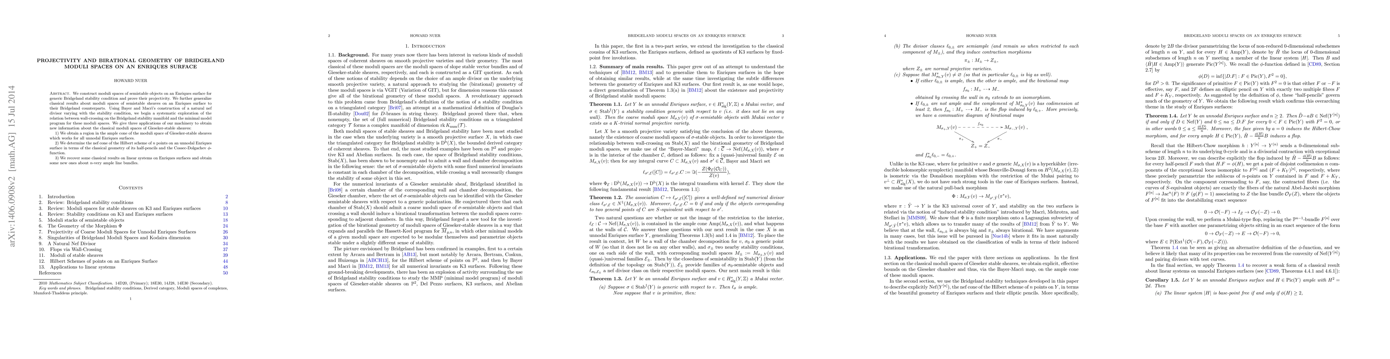 This paper constructs projective Bridgeland moduli spaces on Enriques surfaces, proving their projectivity and exploring their connection to classical moduli spaces of sheaves. It identifies new regions in the moduli space of Gieseker-stable sheaves and determines the nef cone of the Hilbert scheme of points on an unnodal Enriques surface.