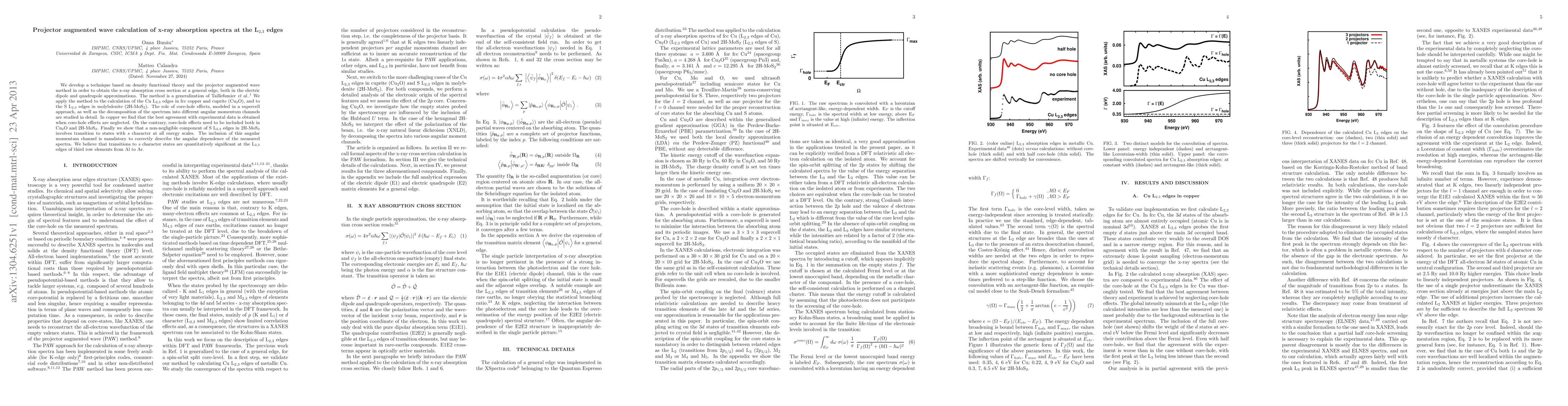 This paper develops a density functional theory-based method using projector augmented waves to calculate x-ray absorption spectra at L2,3 edges, applying it to Cu in copper and cuprite, and S in molybdenite. It finds that core-hole effects are crucial in cuprite and molybdenite but not in copper, and highlights the importance of including s-character transitions for accurate spectral analysis.