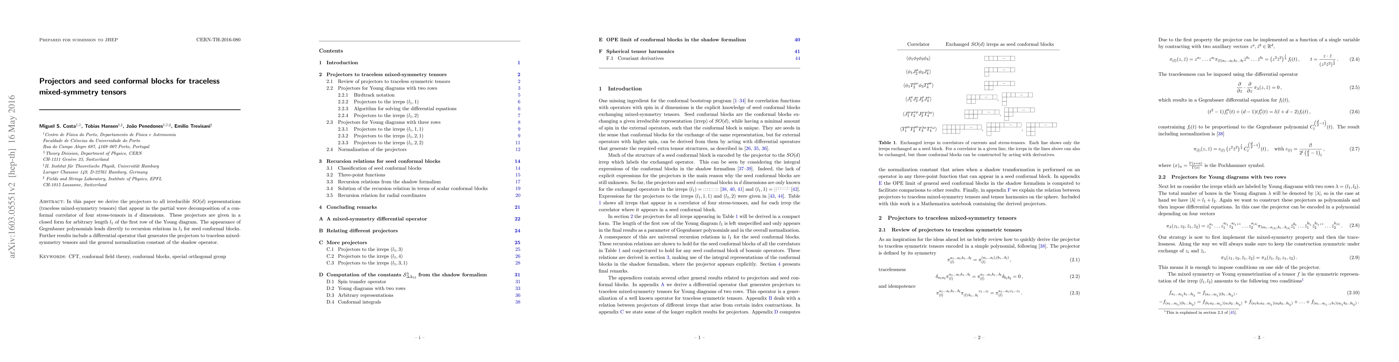 In this paper we derive the projectors to all irreducible SO(d) representations (traceless mixed-symmetry tensors) that appear in the partial wave decomposition of a conformal correlator of four stress-tensors in d dimensions. These projectors are given in a closed form for arbitrary length $l_1$ of the first row of the Young diagram. The appearance of Gegenbauer polynomials leads directly to recursion relations in $l_1$ for seed conformal blocks. Further results include a differential operator that generates the projectors to traceless mixed-symmetry tensors and the general normalization constant of the shadow operator.