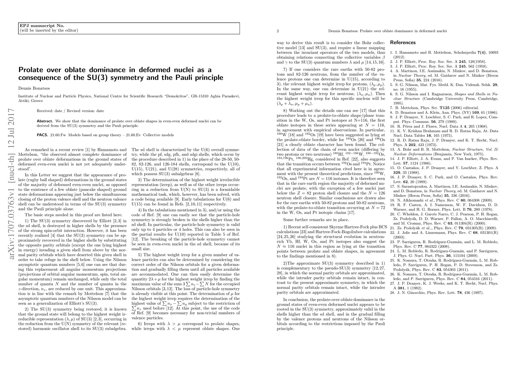 Summary: This paper demonstrates that the prevalence of prolate shapes over oblate shapes in even-even deformed nuclei is a result of the interplay between SU(3) symmetry and the Pauli exclusion principle. The findings provide a theoretical basis for understanding nuclear shape deformation.