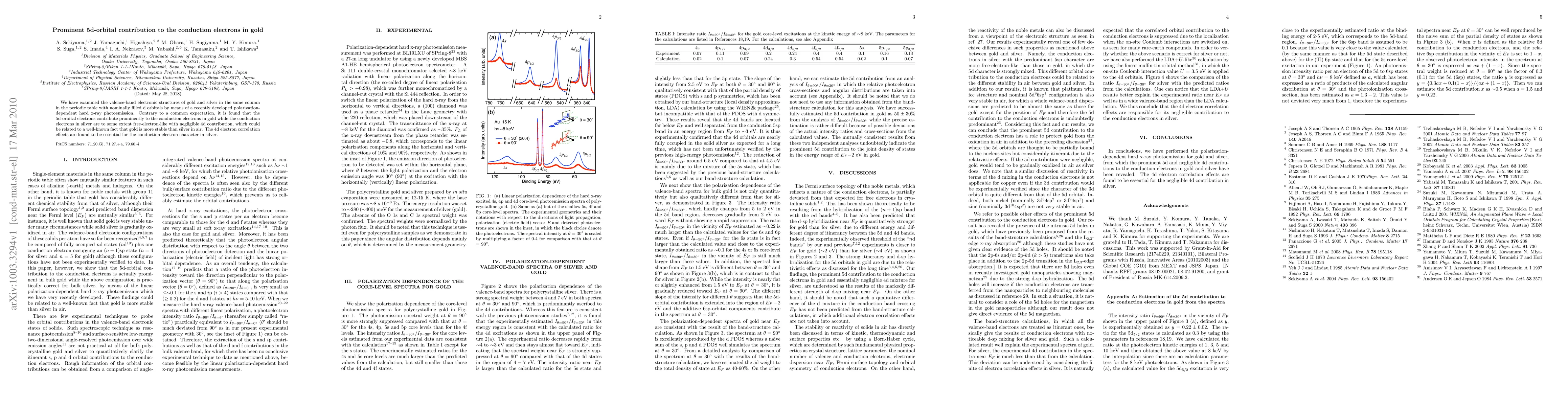 We have examined the valence-band electronic structures of gold and silver in the same column in the periodic table with nominally filled d orbitals by means of a recently developed polarization-dependent hard x-ray photoemission. Contrary to a common expectation, it is found that the 5d-orbital electrons contribute prominently to the conduction electrons in gold while the conduction electrons in silver are to some extent free-electron-like with negligible 4d contribution, which could be related to a well-known fact that gold is more stable than silver in air. The 4d electron correlation effects are found to be essential for the conduction electron character in silver.