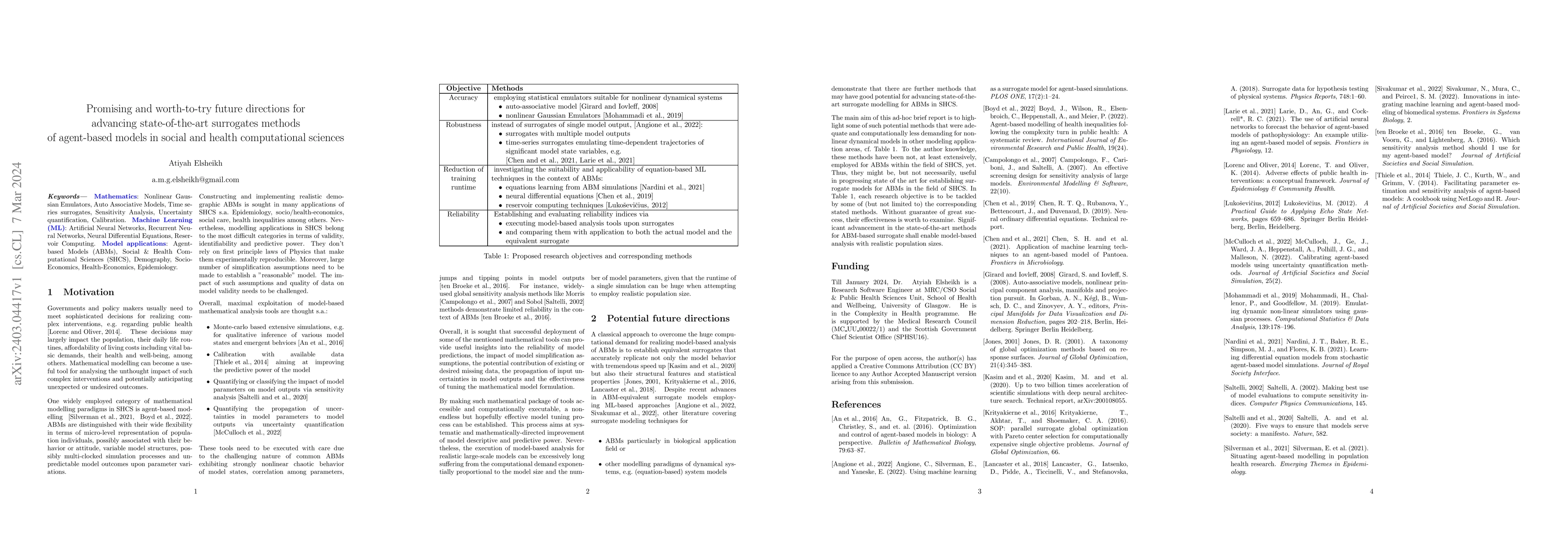 This paper discusses the computational challenges of large-scale Agent-Based Models (ABMs) and introduces surrogate modeling techniques as a potential, less resource-intensive alternative. While these methods have not been extensively used in Social Health Computational Sciences (SHCS), they hold promise for advancing the field's state-of-the-art surrogate modeling.