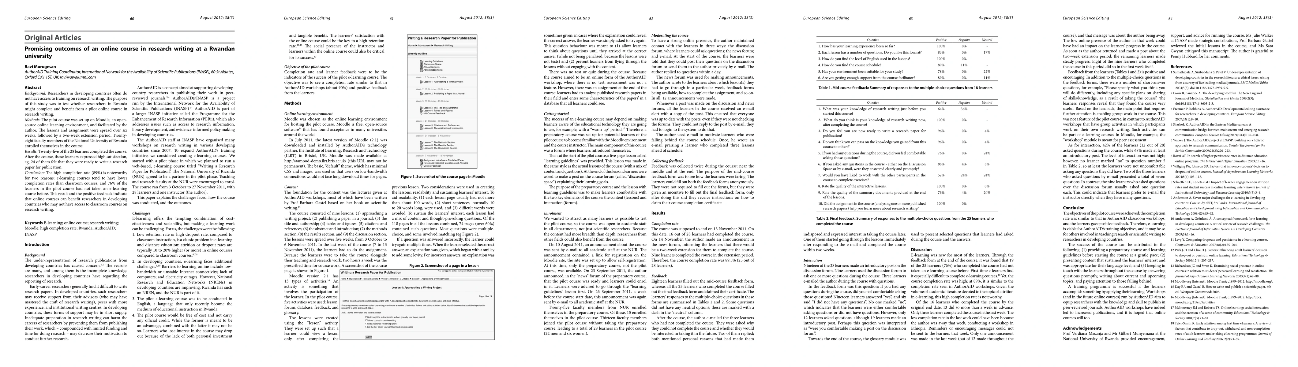 Researchers in Rwanda completed a 6-week online course on research writing with a high completion rate of 89% despite having no prior e-learning experience. This pilot study suggests that online courses can be effective for training researchers in developing countries.