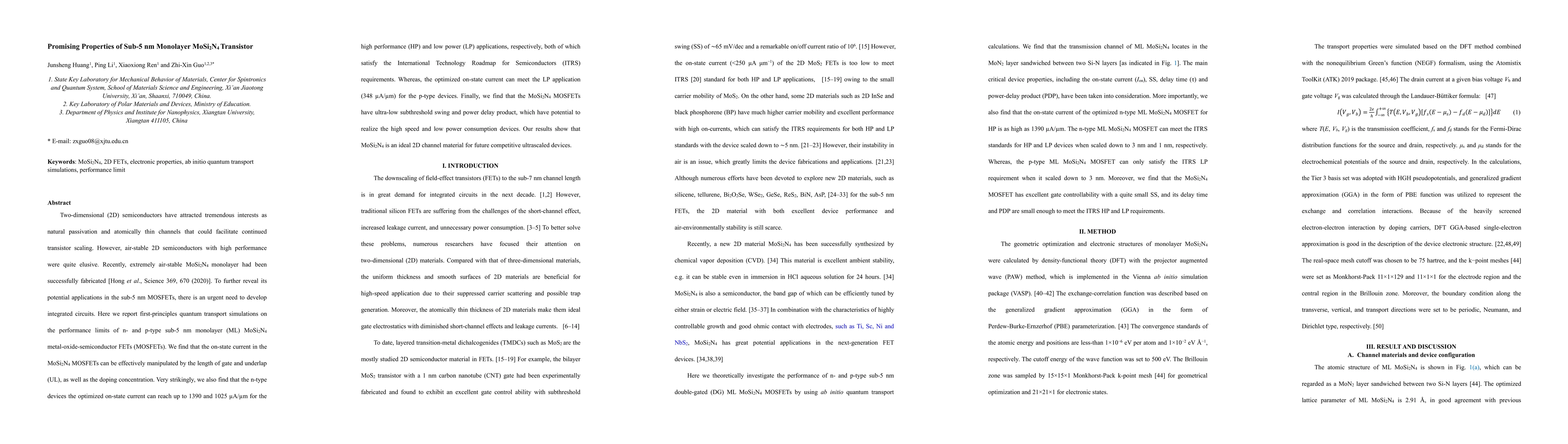 This paper reports first-principles quantum transport simulations on sub-5 nm monolayer MoSi2N4 MOSFETs, demonstrating their potential for high-performance and low-power applications. The study finds that MoSi2N4 monolayers can achieve optimized on-state current up to 1390 and 1025 uA/um for n-type devices, meeting ITRS requirements, and ultra-low subthreshold swing, indicating high speed and low power consumption.