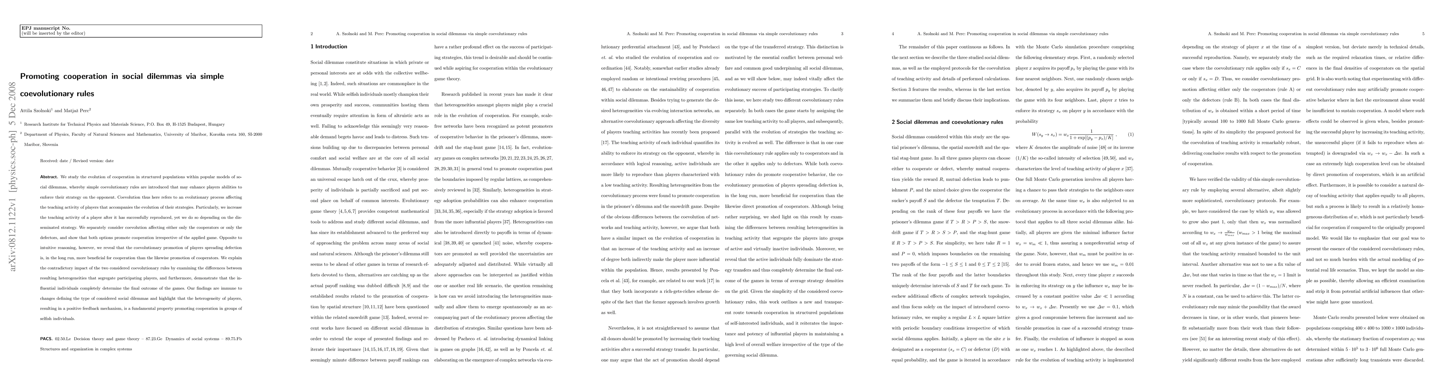 We study the evolution of cooperation in structured populations within popular models of social dilemmas, whereby simple coevolutionary rules are introduced that may enhance players abilities to enforce their strategy on the opponent. Coevolution thus here refers to an evolutionary process affecting the teaching activity of players that accompanies the evolution of their strategies. Particularly, we increase the teaching activity of a player after it has successfully reproduced, yet we do so depending on the disseminated strategy. We separately consider coevolution affecting either only the cooperators or only the defectors, and show that both options promote cooperation irrespective of the applied game. Opposite to intuitive reasoning, however, we reveal that the coevolutionary promotion of players spreading defection is, in the long run, more beneficial for cooperation than the likewise promotion of cooperators. We explain the contradictory impact of the two considered coevolutionary rules by examining the differences between resulting heterogeneities that segregate participating players, and furthermore, demonstrate that the influential individuals completely determine the final outcome of the games. Our findings are immune to changes defining the type of considered social dilemmas and highlight that the heterogeneity of players, resulting in a positive feedback mechanism, is a fundamental property promoting cooperation in groups of selfish individuals.
