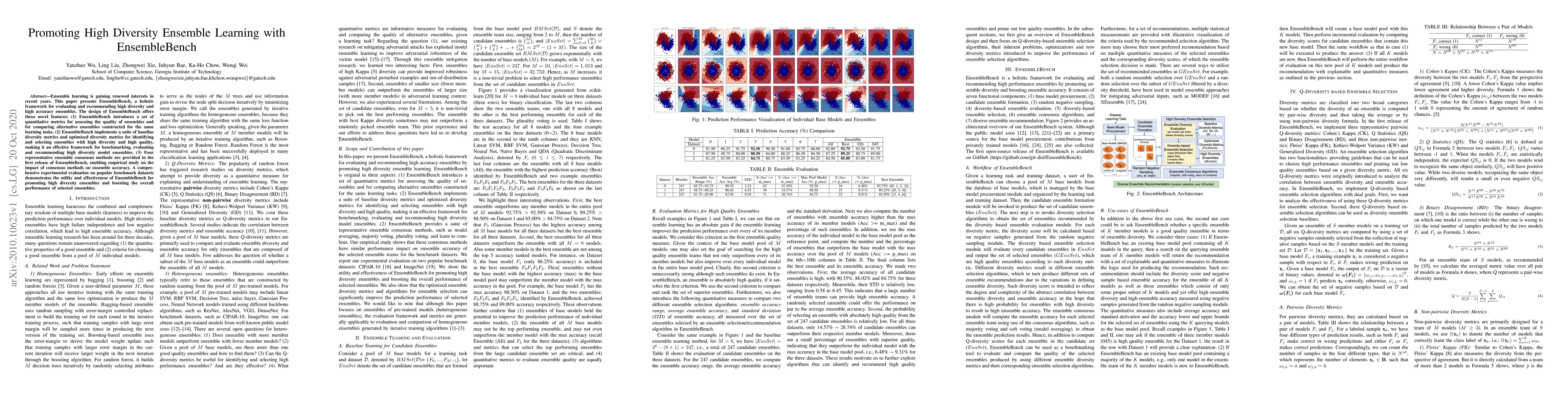 This paper introduces EnsembleBench, a framework for evaluating and recommending high diversity and accurate ensembles. It demonstrates the utility of EnsembleBench in promoting high diversity ensembles and boosting overall performance through comprehensive experimental evaluation.