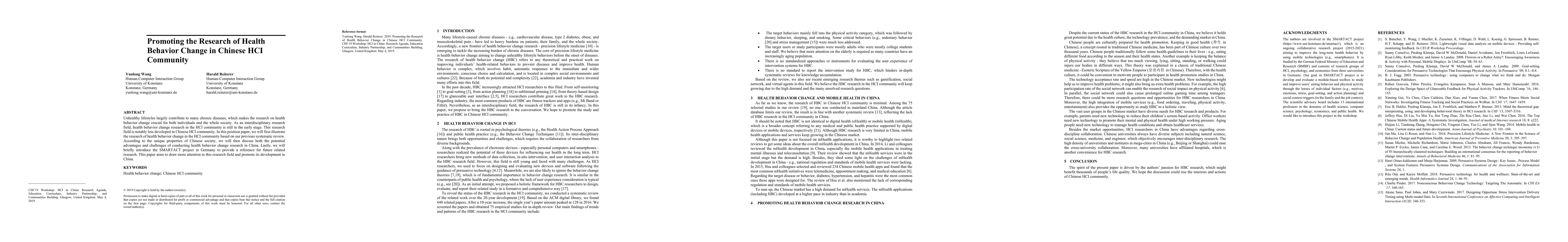 This research paper promotes health behavior change research in China's HCI community, highlighting its importance for individual and societal well-being, while also discussing challenges and potential advantages.
