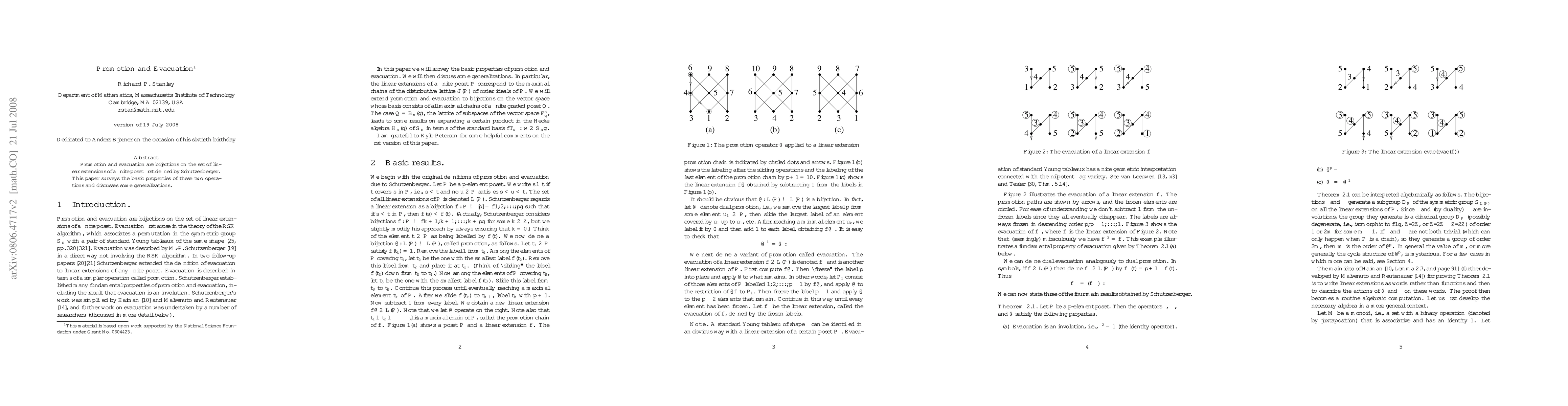 Promotion and evacuation are bijections on the set of linear extensions of a finite poset first defined by Schutzenberger. This paper surveys the basic properties of these two operations and discusses some generalizations.