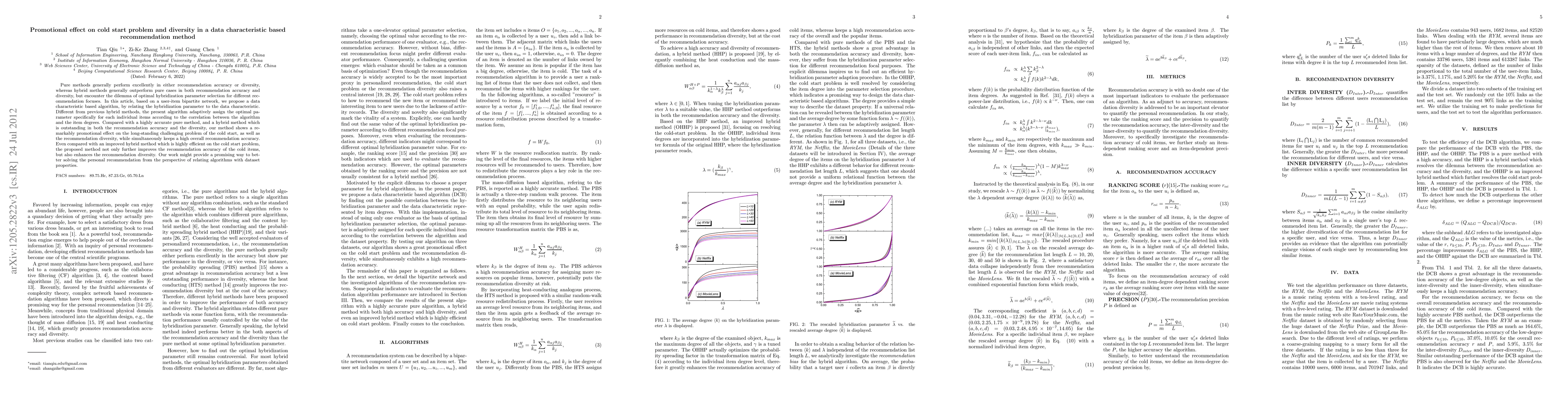 This research introduces a data characteristic-based recommendation algorithm that adaptively assigns optimal hybridization parameters for each item, addressing the cold start problem and improving diversity. It outperforms pure and existing hybrid methods in accuracy and diversity, suggesting a promising approach for personalized recommendations based on dataset properties.