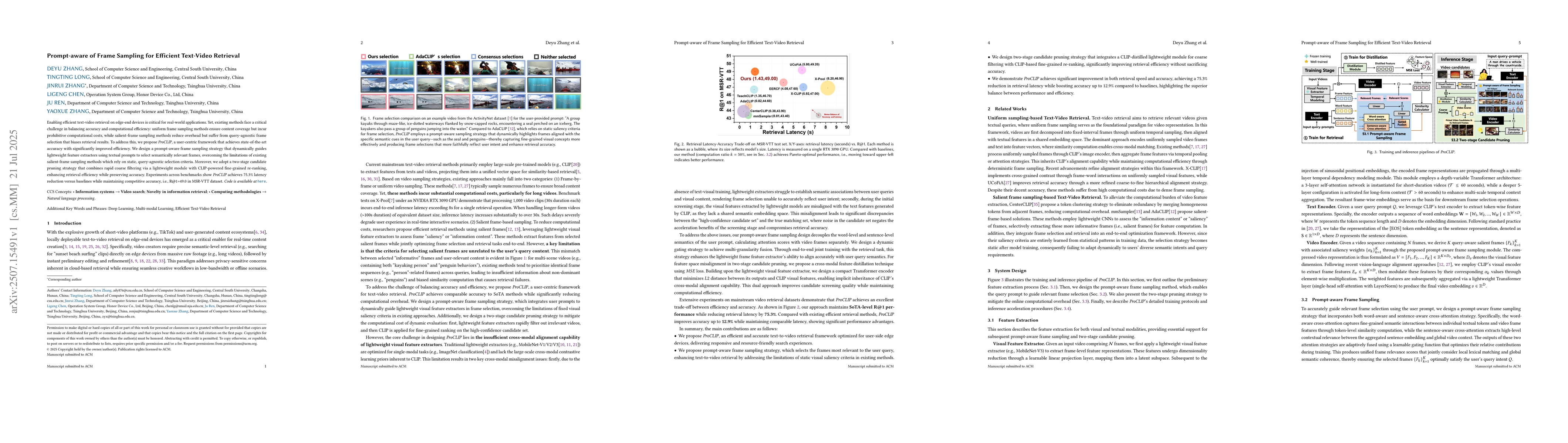 Enabling efficient text-video retrieval on edge-end devices is critical for real-world applications. Yet, existing methods face a critical challenge in balancing accuracy and computational efficiency: uniform frame sampling methods ensure content coverage but incur prohibitive computational costs, while salient-frame sampling methods reduce overhead but suffer from query-agnostic frame selection that biases retrieval results. To address this, we propose ProCLIP, a user-centric framework that achieves state-of-the-art accuracy with significantly improved efficiency. We design a prompt-aware frame sampling strategy that dynamically guides lightweight feature extractors using textual prompts to select semantically relevant frames, overcoming the limitations of existing salient-frame sampling methods which rely on static, query-agnostic selection criteria. Moreover, we adopt a two-stage candidate pruning strategy that combines rapid coarse filtering via a lightweight module with CLIP-powered fine-grained re-ranking, enhancing retrieval efficiency while preserving accuracy. Experiments across benchmarks show ProCLIP achieves 75.3% latency reduction versus baselines while maintaining competitive accuracy, i.e., R@1=49.0 in MSR-VTT dataset. Code is available at https://github.com/tiffylong/ProCLIP.