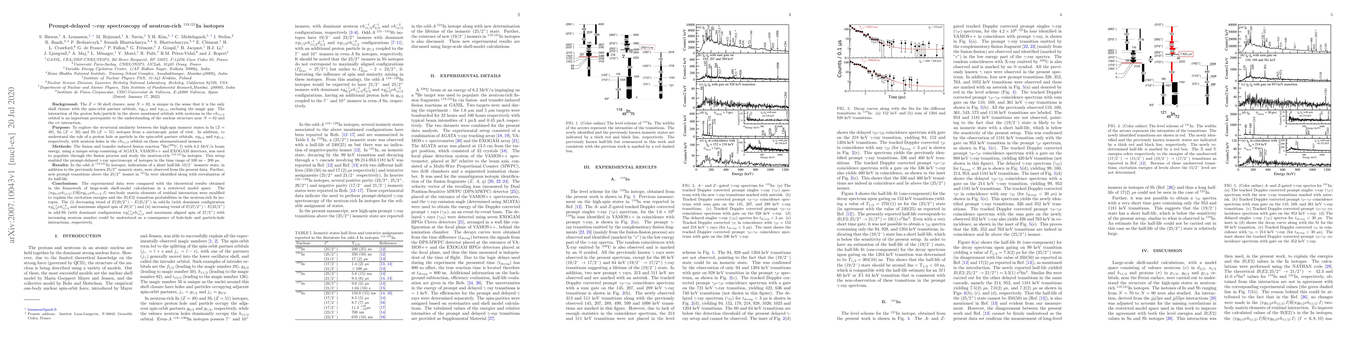 The fusion and transfer induced fission reaction $^{9}$Be($^{238}$U,~f) with 6.2 MeV/u beam energy, using a unique setup consisting of AGATA, VAMOS++ and EXOGAM detectors, was used to populate through the fission process and study the neutron-rich $^{119,121}$In isotopes. This setup enabled the prompt-delayed $\gamma$-ray spectroscopy of isotopes in the time range of $100~\rm{ns} - 200~\mu\rm{s}$. In the odd-$A$ $^{119,121}$In isotopes, indications of a short half-life $19/2^{-}$ isomeric state, in addition to the previously known $25/2^{+}$ isomeric state, were observed from the present data. Further, new prompt transitions above the $25/2^{+}$ isomer in $^{121}$In were identified along with reevaluation of its half-life. The experimental data were compared with the theoretical results obtained in the framework of large-scale shell-model calculations in a restricted model space. The $\langle \pi g_{9/2} \nu h_{11/2};I \arrowvert \hat{\mathcal{H}}\arrowvert \pi g_{9/2} \nu h_{11/2};I\rangle$ two-body matrix elements of residual interaction were modified to explain the excitation energies and the $B(E2)$ transition probabilities in the neutron-rich In isotopes. The (i) decreasing trend of $E(29/2^{+}) - E(25/2^{+})$ in odd-In (with dominant configuration $\pi g_{9/2}^{-1}\nu h_{11/2}^{-2}$ and maximum aligned spin of $29/2^{+}$) and (ii) increasing trend of $E(27/2^{+}) - E(23/2^{+})$ in odd-Sb (with dominant configuration $\pi g_{7/2}^{+1}\nu h_{11/2}^{-2}$ and maximum aligned spin of $27/2^{+}$) with increasing neutron number could be understood as a consequence of hole-hole and particle-hole interactions, respectively.