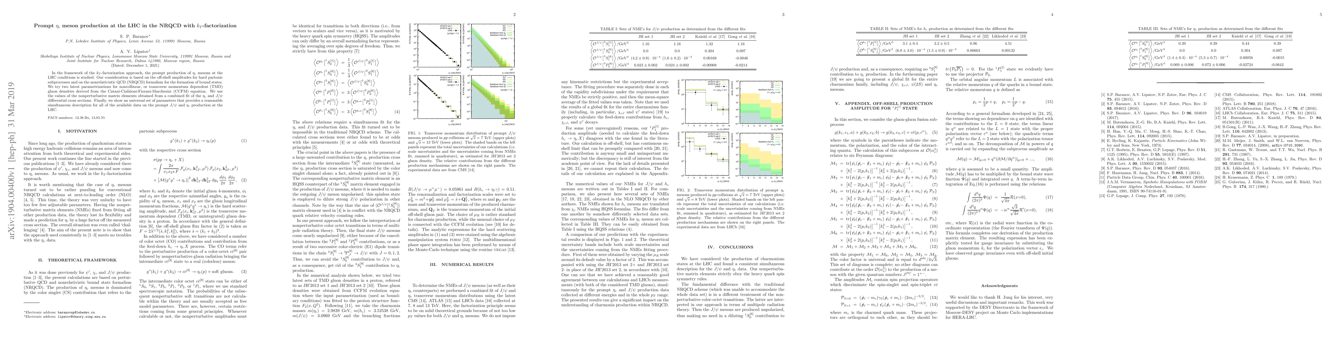 This paper investigates the prompt production of $\eta_c$ mesons at the LHC using $k_T$-factorization and NRQCD, employing the latest TMD gluon densities and nonperturbative matrix elements from $\eta_c$ and $J/\psi$ cross sections. It presents a set of parameters that adequately describes the available data on both prompt $J/\psi$ and $\eta_c$ production.