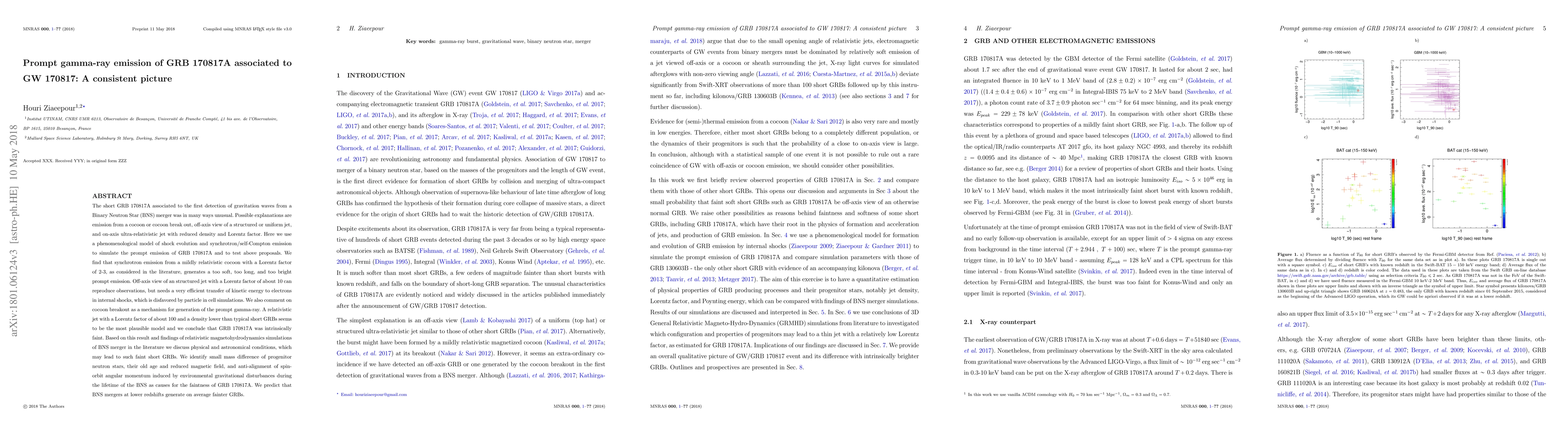 The research investigates the prompt gamma-ray emission from GRB 170817A linked to the gravitational wave event GW 170817 from a Binary Neutron Star merger. The study concludes that a relativistic jet with a high Lorentz factor and reduced density is the most plausible explanation for the observed faintness of GRB 170817A, attributing its faintness to specific progenitor characteristics.