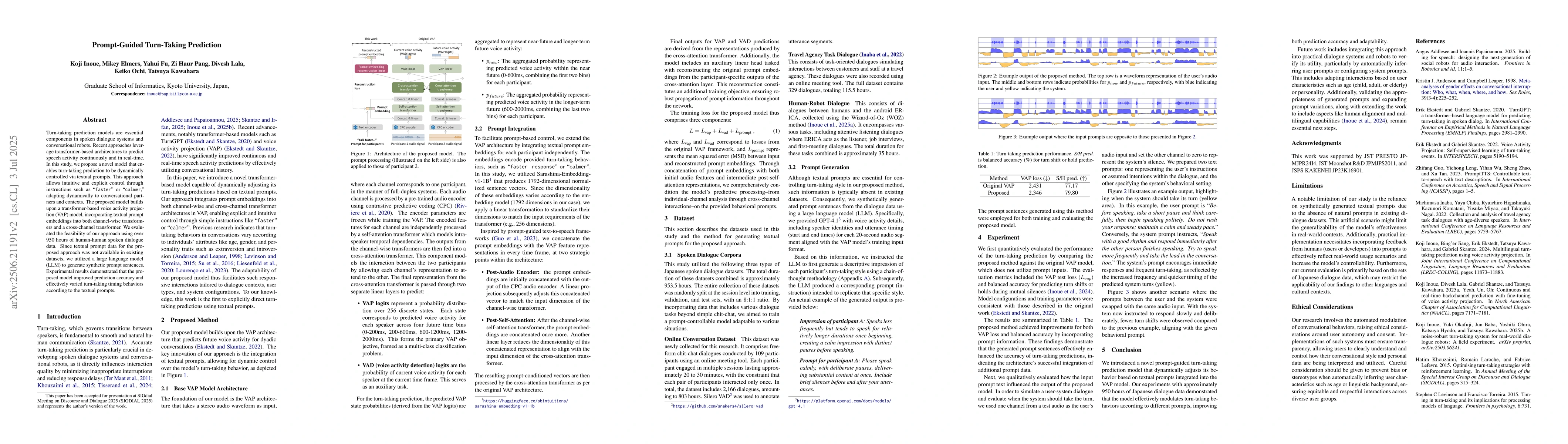 The paper presents a transformer architecture that seamlessly incorporates textual prompts into turn-taking prediction, including a prompt reconstruction loss for robust prompt propagation.