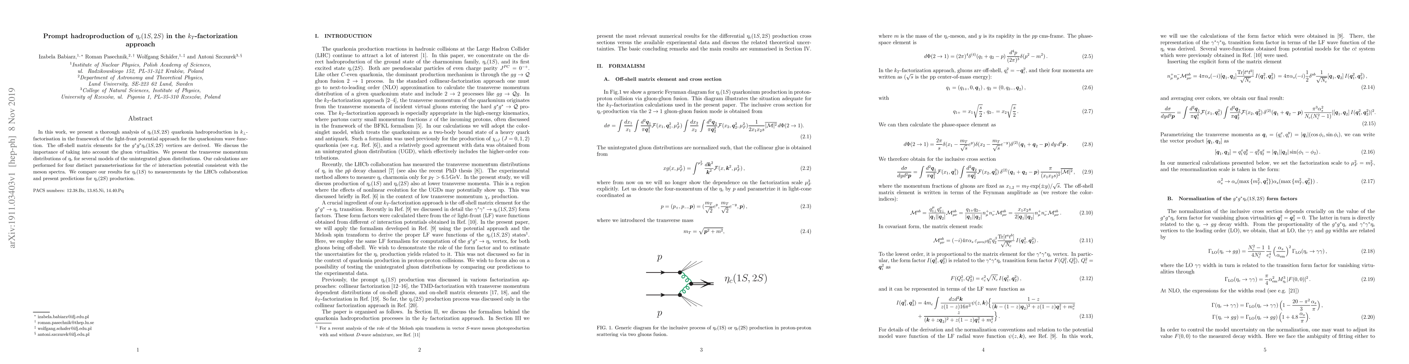 In this work, we present a thorough analysis of $\eta_c(1S,2S)$ quarkonia hadroproduction in $k_\perp$-factorisation in the framework of the light-front potential approach for the quarkonium wave function. The off-shell matrix elements for the $g^* g^* \eta_c(1S,2S)$ vertices are derived. We discuss the importance of taking into account the gluon virtualities. %We discuss the role of relativistic corrections, the Melosh spin-rotation and theoretical uncertainties by comparing our results with the standard NRQCD approach. We present the transverse momentum distributions of $\eta_c$ for several models of the unintegrated gluon distributions. Our calculations are performed for four distinct parameterisations for the $c\bar c$ interaction potential consistent with the meson spectra. We compare our results for $\eta_c(1S)$ to measurements by the LHCb collaboration and present predictions for $\eta_c(2S)$ production.