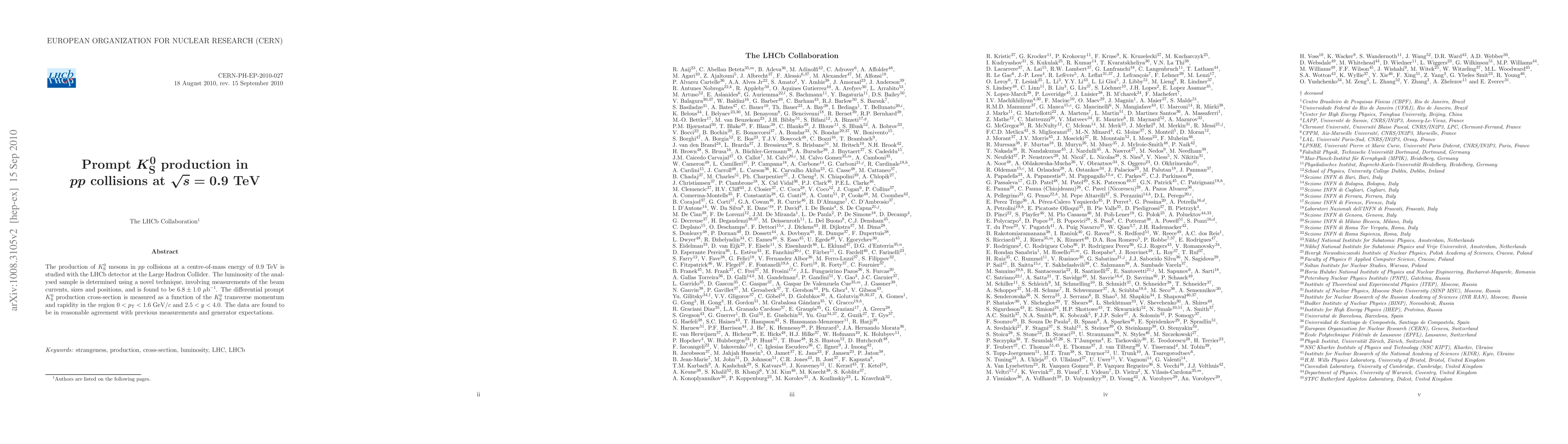 Researchers at the Large Hadron Collider studied K_short meson production in pp collisions at 0.9 TeV, finding results that agree with previous measurements and generator expectations, while also determining a novel luminosity of 6.8 +/- 1.0 microbarn^-1.