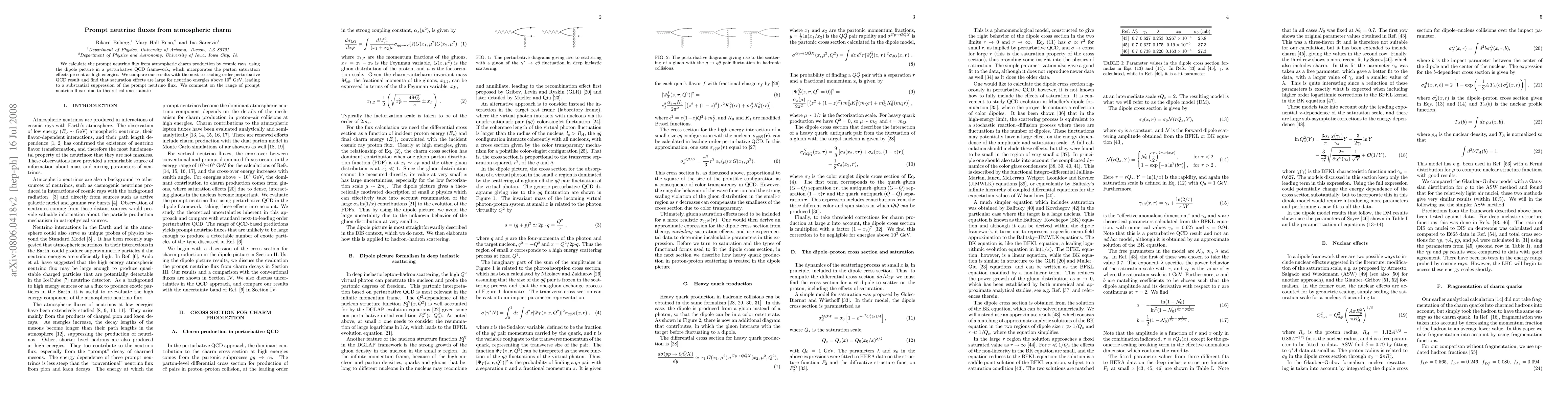 This paper calculates the prompt neutrino flux from atmospheric charm production, considering parton saturation effects in high-energy cosmic rays. It finds significant suppression of the flux at neutrino energies above 10^6 GeV due to these effects, and discusses the impact of theoretical uncertainties on the resulting flux range.
