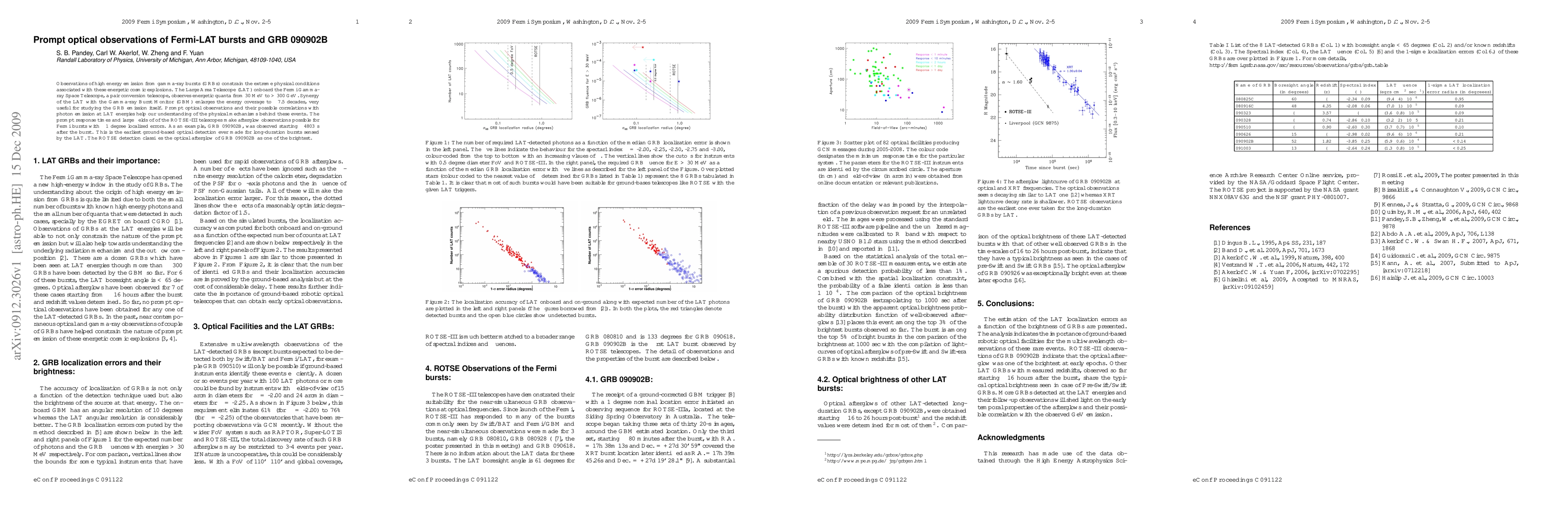 This paper discusses prompt optical observations of high-energy gamma-ray bursts (GRBs) using the Fermi-LAT and ROTSE-III telescopes, highlighting the earliest ground-based detection of GRB 090902B, providing insights into the physical mechanisms of these energetic cosmic explosions.