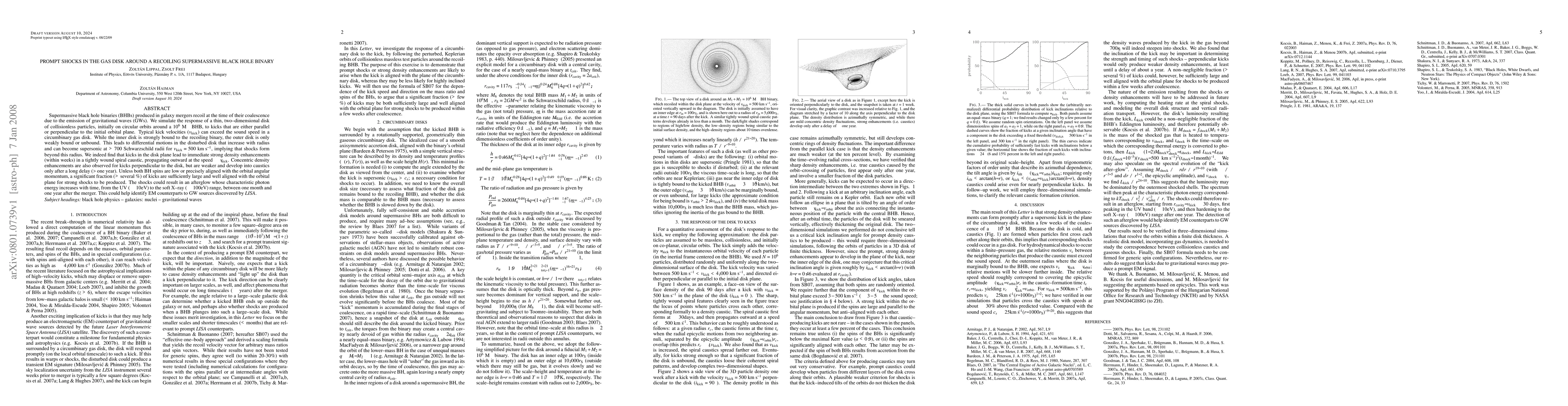 This study investigates the impact of gravitational recoil on a gas disk around a supermassive black hole binary, finding that kicks exceeding sound speeds can induce strong shocks and density enhancements in the disk, potentially observable as an afterglow in the UV to X-ray range. The shocks are most pronounced for kicks aligned with the orbital plane, offering a potential electromagnetic counterpart to gravitational wave sources.