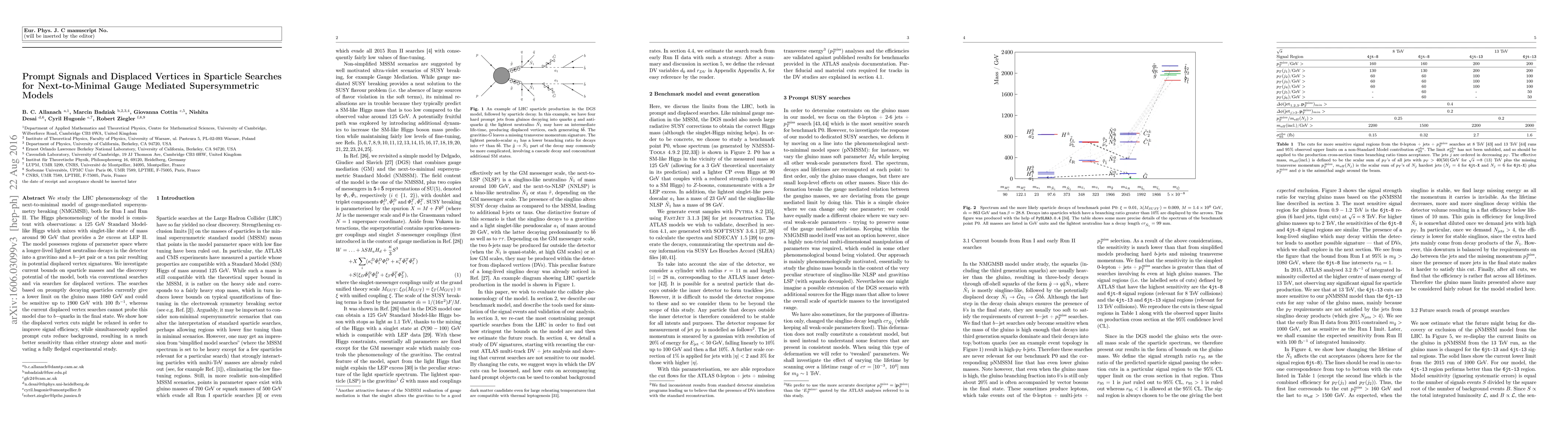 We study the LHC phenomenology of the next-to-minimal model of gauge-mediated supersymmetry breaking (NMGMSB), both for Run I and Run II. The Higgs phenomenology of the model is consistent with observations: a 125 GeV Standard Model-like Higgs which mixes with singlet-like state of mass around 90 GeV that provides a 2$\sigma$ excess at LEP II. The model possesses regions of parameter space where a longer-lived lightest neutralino decays in the detector into a gravitino and a $b-$jet pair or a tau pair. We investigate current lower bounds on sparticle masses and the discovery potential of the model, both via conventional sparticle searches and via searches for displaced vertices. The strongest bound from searches for promptly decaying sparticles yields a lower limit on the gluino mass of 1080 GeV. An analysis of 100 fb$^{-1}$ from Run II, on the other hand, is expected to be sensitive up to 1900 GeV. The displaced vertex searches from Run I suffer from a very low signal efficiency, mainly due to the presence of $b-$quarks in the final state. We show how the displaced vertex cuts might be relaxed in order to improve signal efficiency, while simultaneous prompt objects can be used to cut down background. We find that a combined search strategy with both prompt and displaced cuts potentially has a far better sensitivity to this model than either set alone, motivating a fully fledged experimental study.