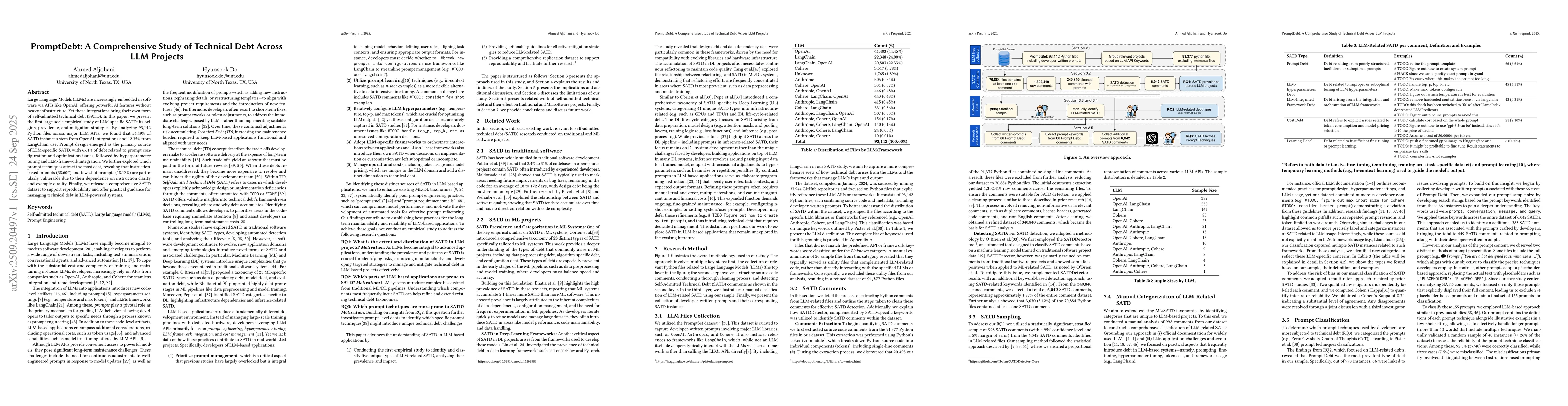 Provides the first systematic quantification of self-admitted technical debt in LLM projects, offering a reproducible dataset and actionable guidance for developers and tool builders to manage prompt, hyperparameter, and framework-related debt