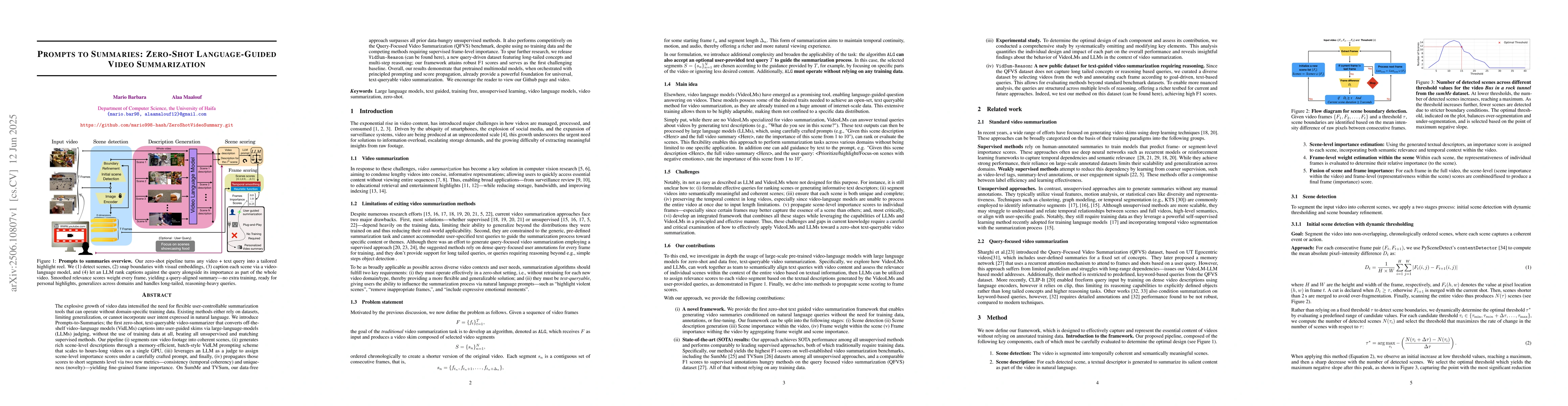 The explosive growth of video data intensified the need for flexible user-controllable summarization tools that can operate without domain-specific training data. Existing methods either rely on datasets, limiting generalization, or cannot incorporate user intent expressed in natural language. We introduce Prompts-to-Summaries: the first zero-shot, text-queryable video summarizer that converts off-the-shelf video-language models (VidLMs) captions into user-guided skims via large language models (LLMs) judging, without the use of training data at all, beating all unsupervised and matching supervised methods. Our pipeline (i) segments raw video footage into coherent scenes, (ii) generates rich scene-level descriptions through a memory-efficient, batch-style VidLM prompting scheme that scales to hours-long videos on a single GPU, (iii) leverages an LLM as a judge to assign scene-level importance scores under a carefully crafted prompt, and finally, (iv) propagates those scores to short segments level via two new metrics: consistency (temporal coherency) and uniqueness (novelty), yielding fine-grained frame importance. On SumMe and TVSum, our data-free approach surpasses all prior data-hungry unsupervised methods. It also performs competitively on the Query-Focused Video Summarization (QFVS) benchmark, despite using no training data and the competing methods requiring supervised frame-level importance. To spur further research, we release VidSum-Reason, a new query-driven dataset featuring long-tailed concepts and multi-step reasoning; our framework attains robust F1 scores and serves as the first challenging baseline. Overall, our results demonstrate that pretrained multimodal models, when orchestrated with principled prompting and score propagation, already provide a powerful foundation for universal, text-queryable video summarization.