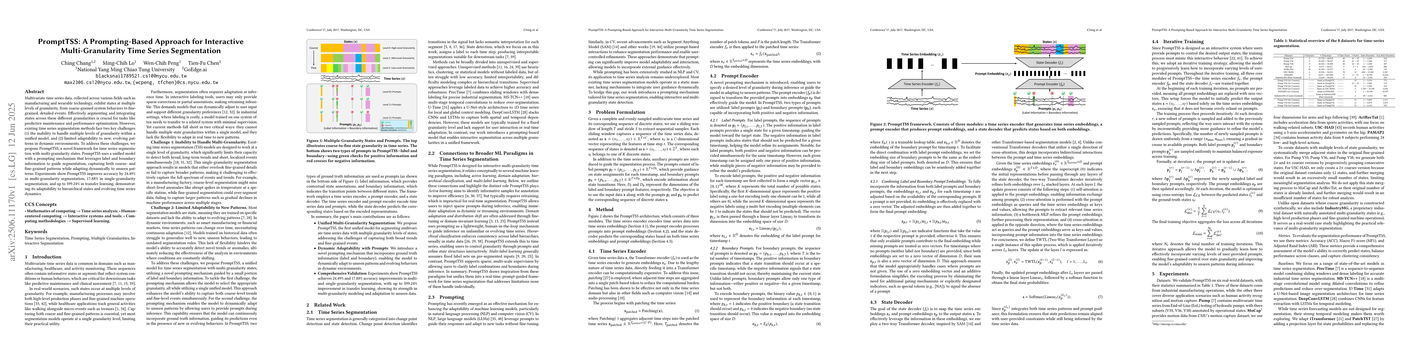 Multivariate time series data, collected across various fields such as manufacturing and wearable technology, exhibit states at multiple levels of granularity, from coarse-grained system behaviors to fine-grained, detailed events. Effectively segmenting and integrating states across these different granularities is crucial for tasks like predictive maintenance and performance optimization. However, existing time series segmentation methods face two key challenges: (1) the inability to handle multiple levels of granularity within a unified model, and (2) limited adaptability to new, evolving patterns in dynamic environments. To address these challenges, we propose PromptTSS, a novel framework for time series segmentation with multi-granularity states. PromptTSS uses a unified model with a prompting mechanism that leverages label and boundary information to guide segmentation, capturing both coarse- and fine-grained patterns while adapting dynamically to unseen patterns. Experiments show PromptTSS improves accuracy by 24.49% in multi-granularity segmentation, 17.88% in single-granularity segmentation, and up to 599.24% in transfer learning, demonstrating its adaptability to hierarchical states and evolving time series dynamics.