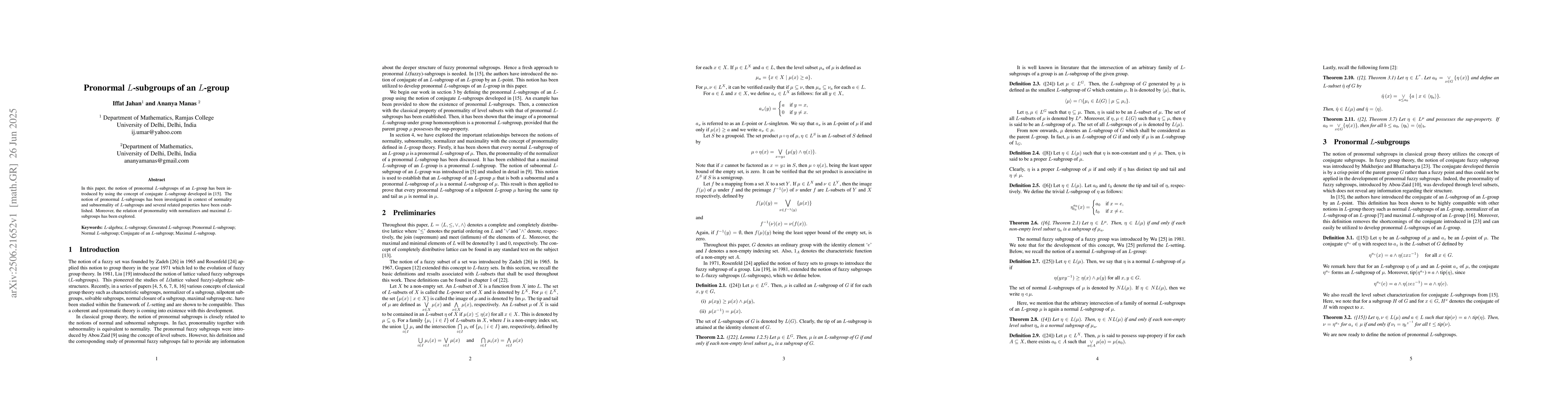 In this paper, the notion of pronormal L-subgroups of an L-group has been introduced by using the concept of conjugate L-subgroup. The notion of pronormal L-subgroups has been investigated in context of normality and subnormality of L-subgroups and several related properties have been established. Moreover, the relation of pronormality with normalizers and maximal L-subgroups has been explored.