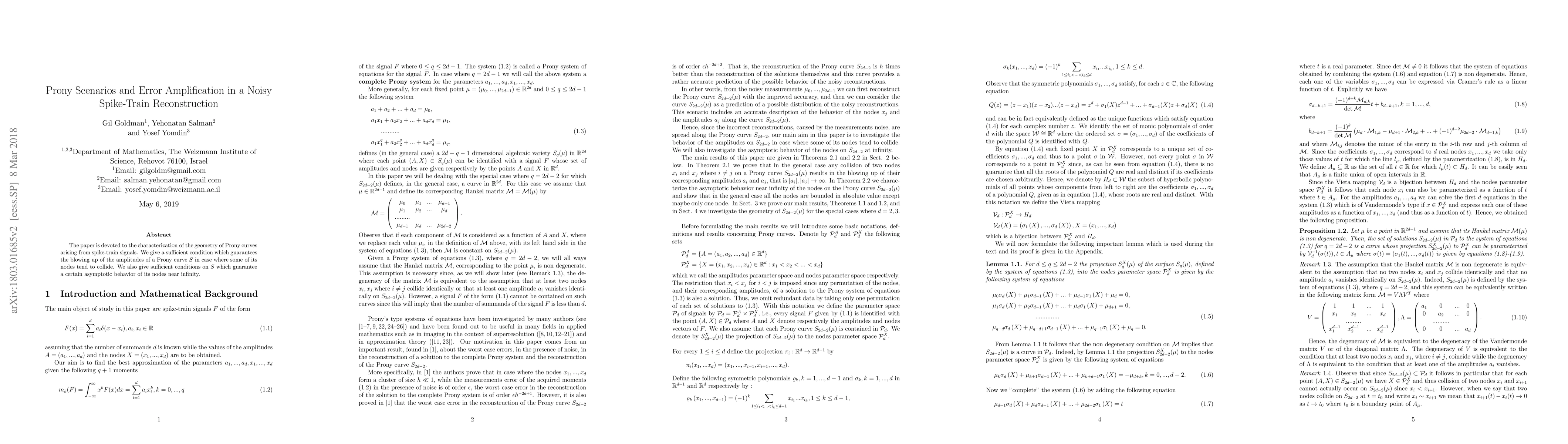 This paper characterizes the geometry of Prony curves from spike-train signals, providing conditions for amplitude amplification when nodes collide and conditions for the asymptotic behavior of nodes as they approach infinity.