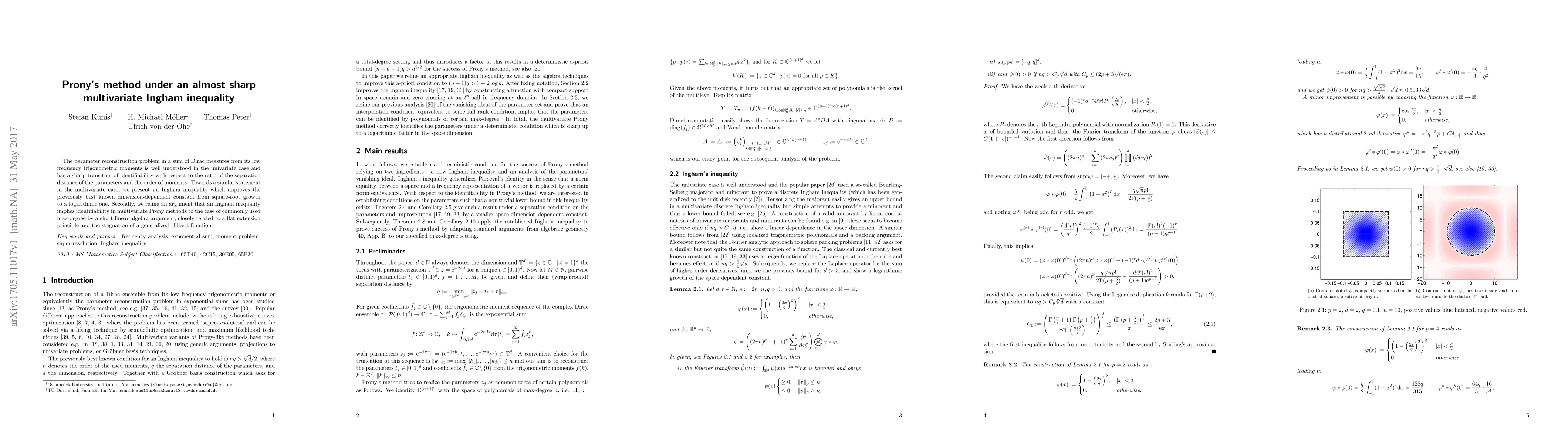 Researchers develop a multivariate Ingham inequality that improves upon previous bounds for parameter reconstruction in Prony methods, enabling identifiability with logarithmic growth instead of square-root, shedding light on the fundamental limits of these methods.