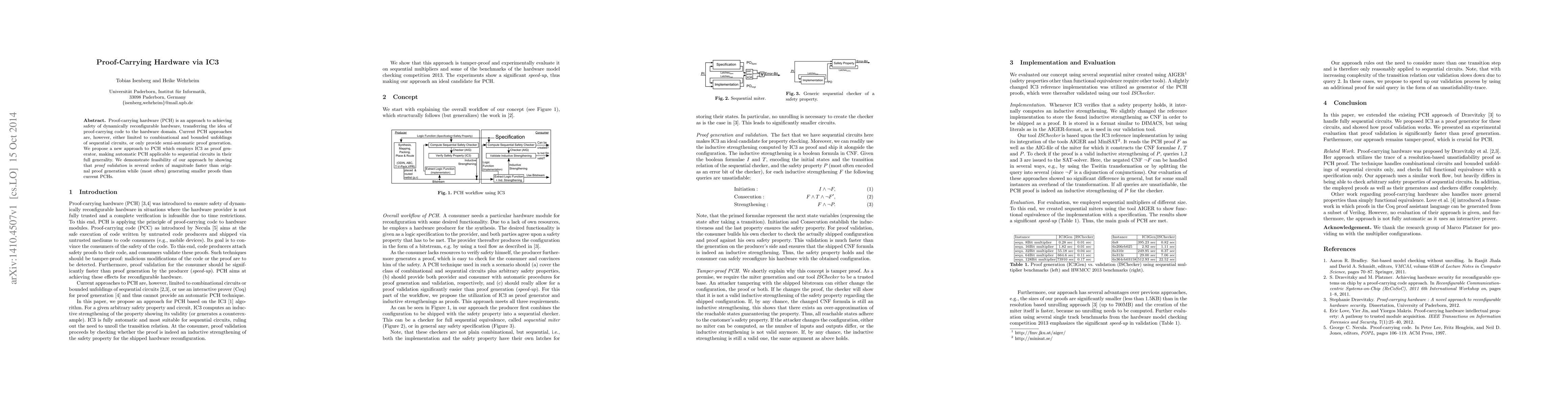 This paper proposes a novel proof-carrying hardware approach using IC3 for proof generation, enabling automatic verification of sequential circuits. The method demonstrates significantly faster proof validation and often generates smaller proofs compared to existing techniques.