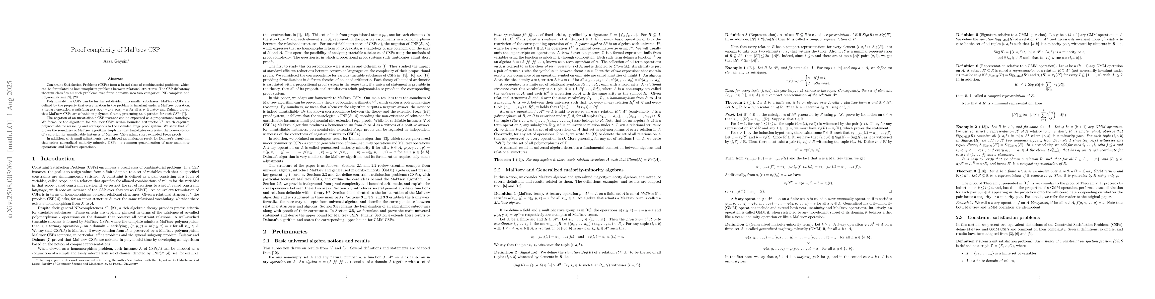 Constraint Satisfaction Problems (CSPs) form a broad class of combinatorial problems, which can be formulated as homomorphism problems between relational structures. The CSP dichotomy theorem classifies all such problems over finite domains into two categories: NP-complete and polynomial-time, see Zhuk (2017), Bulatov (2017). Polynomial-time CSPs can be further subdivided into smaller subclasses. Mal'tsev CSPs are defined by the property that every relation in the problem is invariant under a Mal'tsev operation, a ternary operation $\mu$ satisfying $\mu(x, y, y) = \mu(y, y, x) = x$ for all $x, y$. Bulatov and Dalmau proved that Mal'tsev CSPs are solvable in polynomial time, presenting an algorithm for such CSPs (2006). The negation of an unsatisfiable CSP instance can be expressed as a propositional tautology. We formalize the algorithm for Mal'tsev CSPs within bounded arithmetic $V^1$, which captures polynomial-time reasoning and corresponds to the extended Frege proof system. We show that $V^1$ proves the soundness of Mal'tsev algorithm, implying that tautologies expressing the non-existence of a solution for unsatisfiable instances of Mal'tsev CSPs admit short extended Frege proofs. In addition, with small adjustments, we achieved an analogous result for Dalmau's algorithm that solves generalized majority-minority CSPs -- a common generalization of near-unanimity operations and Mal'tsev operations.