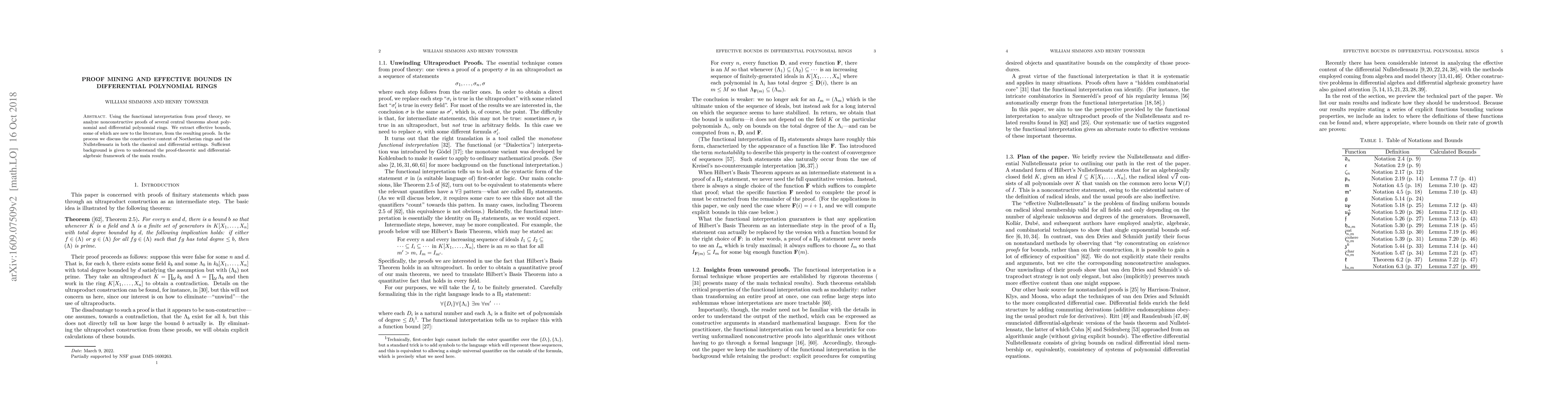 This paper employs proof mining to extract effective bounds from nonconstructive proofs in polynomial and differential polynomial rings, yielding new results. It also explores the constructive aspects of Noetherian rings and the Nullstellensatz in classical and differential contexts.
