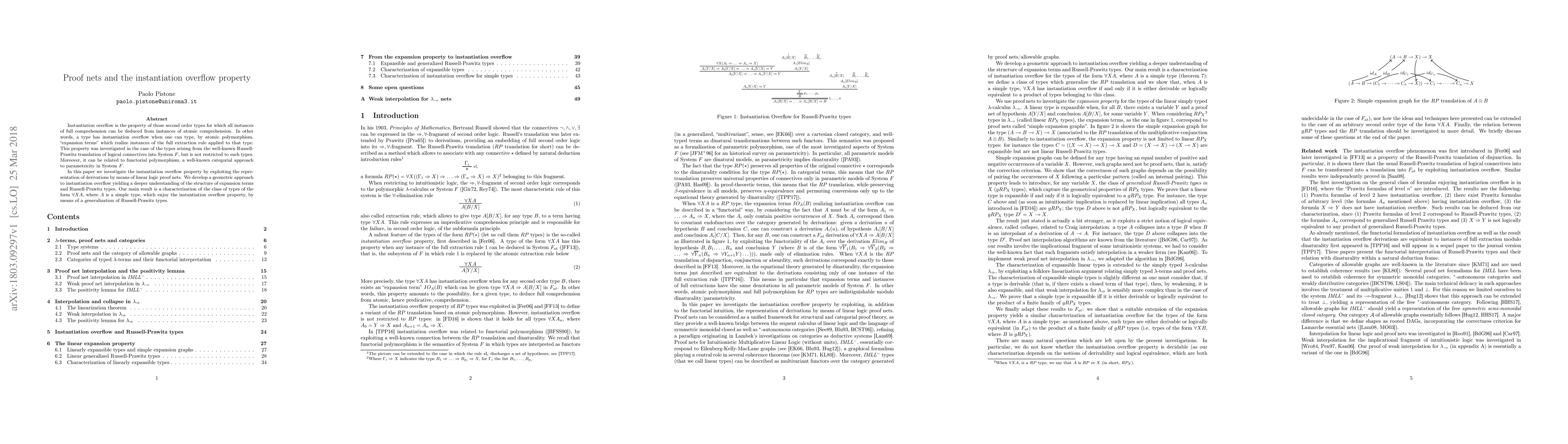 This paper investigates the instantiation overflow property in System F types using linear logic proof nets, finding a characterization of types that enjoy this property as generalizations of Russell-Prawitz types.