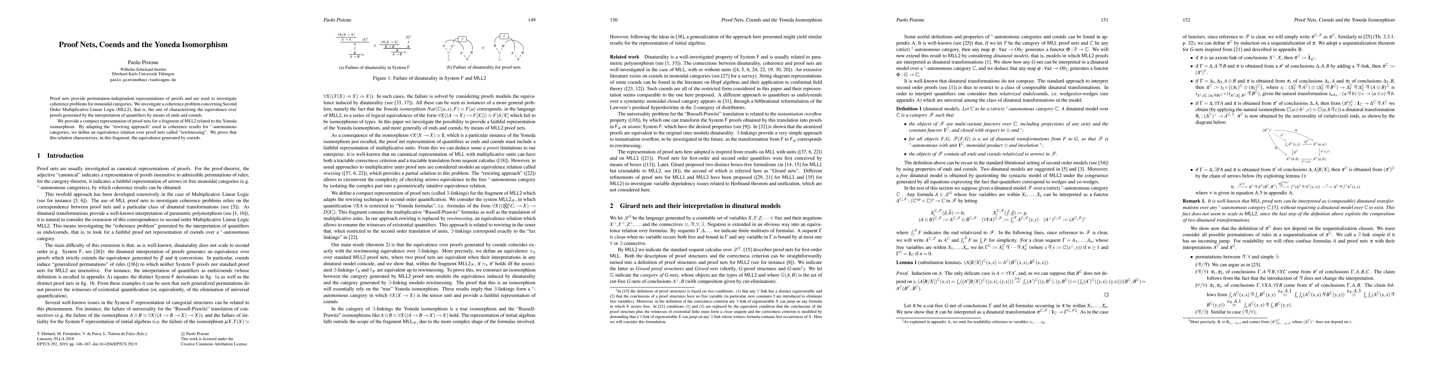This paper investigates coherence in Second Order Multiplicative Linear Logic (MLL2) through proof nets, establishing an equivalence relation called "re-witnessing." It proves that this relation characterizes equivalence over proofs generated by coends in a specific fragment of MLL2 linked to the Yoneda isomorphism.
