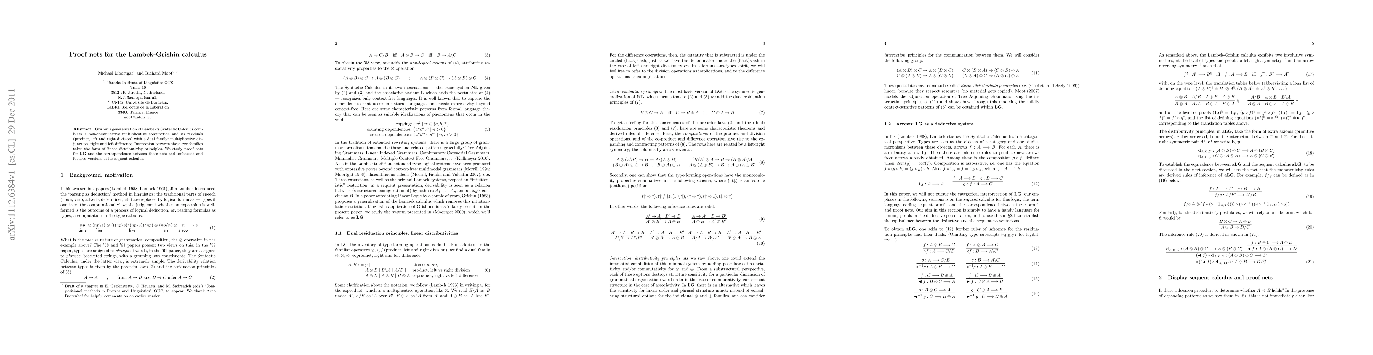 This paper investigates proof nets for Grishin's generalization of Lambek's Syntactic Calculus, which integrates non-commutative conjunction and its residuals with multiplicative disjunction and differences, and examines the correspondence between these proof nets and both unfocused and focused sequent calculi.