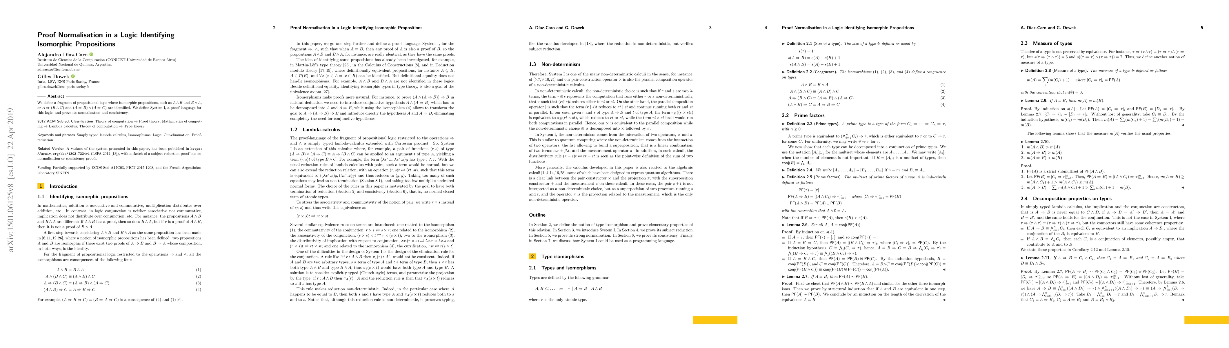 This research introduces a logic where isomorphic propositions are treated as equivalent, defines a proof system called System I for this logic, and demonstrates the system's normalisation and consistency properties.