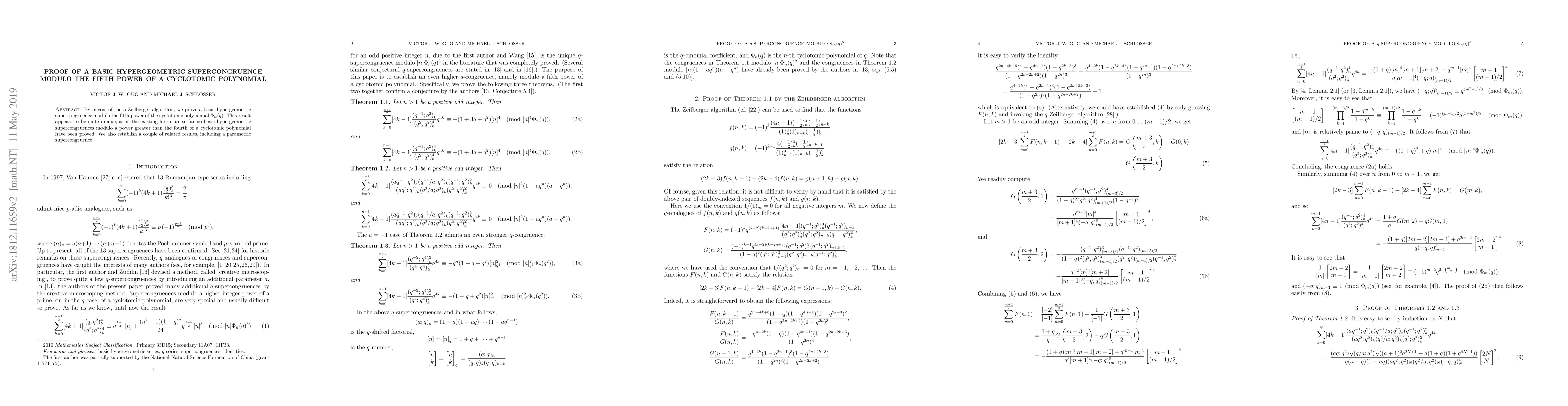 By means of the $q$-Zeilberger algorithm, we prove a basic hypergeometric supercongruence modulo the fifth power of the cyclotomic polynomial $\Phi_n(q)$. This result appears to be quite unique, as in the existing literature so far no basic hypergeometric supercongruences modulo a power greater than the fourth of a cyclotomic polynomial have been proved. We also establish a couple of related results, including a parametric supercongruence.