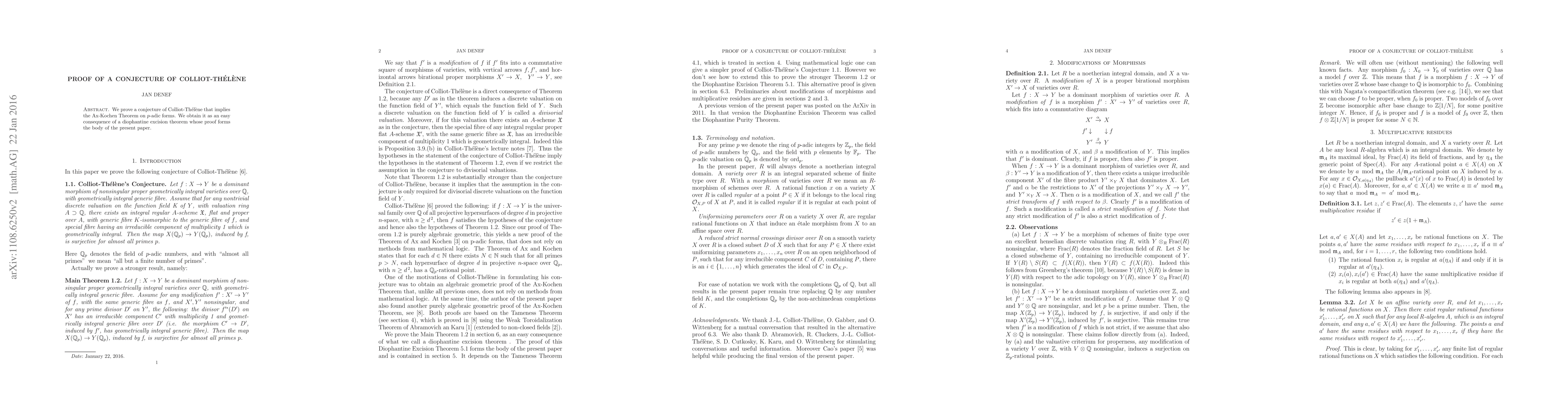 We prove a conjecture of Colliot-Th\'el\`ene that implies the Ax-Kochen Theorem on p-adic forms. We obtain it as an easy consequence of a diophantine excision theorem whose proof forms the body of the present paper.