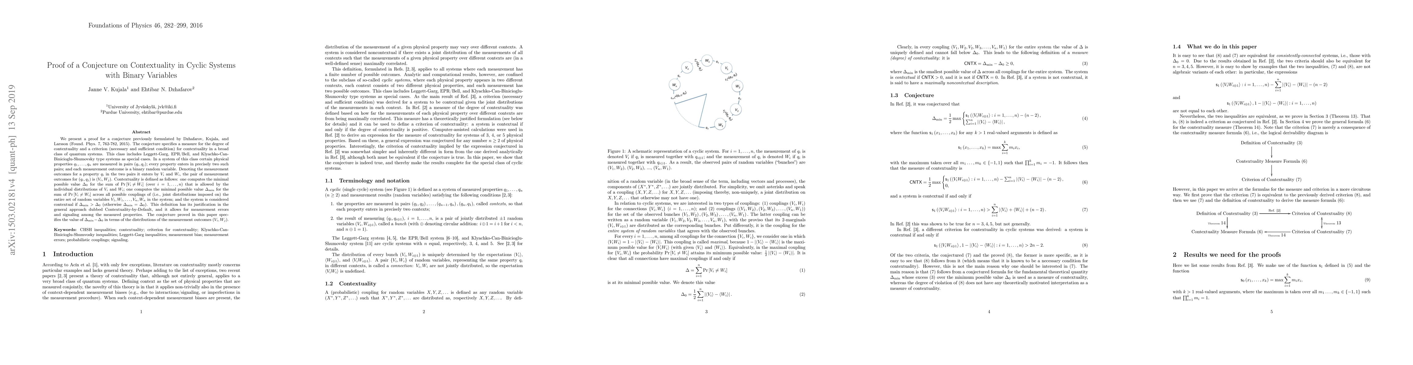 We present a proof for a conjecture previously formulated by Dzhafarov, Kujala, and Larsson (Foundations of Physics, in press, arXiv:1411.2244). The conjecture specifies a measure for the degree of contextuality and a criterion (necessary and sufficient condition) for contextuality in a broad class of quantum systems. This class includes Leggett-Garg, EPR/Bell, and Klyachko-Can-Binicioglu-Shumovsky type systems as special cases. In a system of this class certain physical properties $q_{1},...,q_{n}$ are measured in pairs $(q_{i},q_{j})$; every property enters in precisely two such pairs; and each measurement outcome is a binary random variable. Denoting the measurement outcomes for a property $q_{i}$ in the two pairs it enters by $V_{i}$ and $W_{i}$, the pair of measurement outcomes for $(q_{i},q_{j})$ is $(V_{i},W_{j})$. Contextuality is defined as follows: one computes the minimal possible value $\Delta_{0}$ for the sum of $\Pr[V_{i}\not=W_{i}]$ (over $i=1,...,n$) that is allowed by the individual distributions of $V_{i}$ and $W_{i}$; one computes the minimal possible value $\Delta_{\min}$ for the sum of $\Pr[V_{i}\not=W_{i}]$ across all possible couplings of (i.e., joint distributions imposed on) the entire set of random variables $V_{1},W_{1},...,V_{n},W_{n}$ in the system; and the system is considered contextual if $\Delta_{\min}>\Delta_{0}$ (otherwise $\Delta_{\min}=\Delta_{0}$). This definition has its justification in the general approach dubbed Contextuality-by-Default, and it allows for measurement errors and signaling among the measured properties. The conjecture proved in this paper specifies the value of $\Delta_{\min}-\Delta_{0}$ in terms of the distributions of the measurement outcomes $(V_{i},W_{j})$.