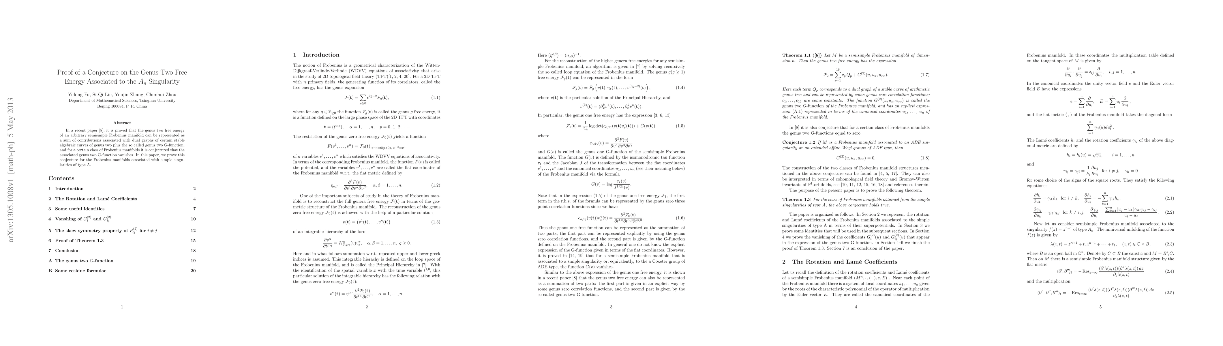 This paper confirms a conjecture that the genus two G-function vanishes for Frobenius manifolds linked to A_n singularities, building on prior work that represents the genus two free energy as contributions from dual graphs of stable algebraic curves.