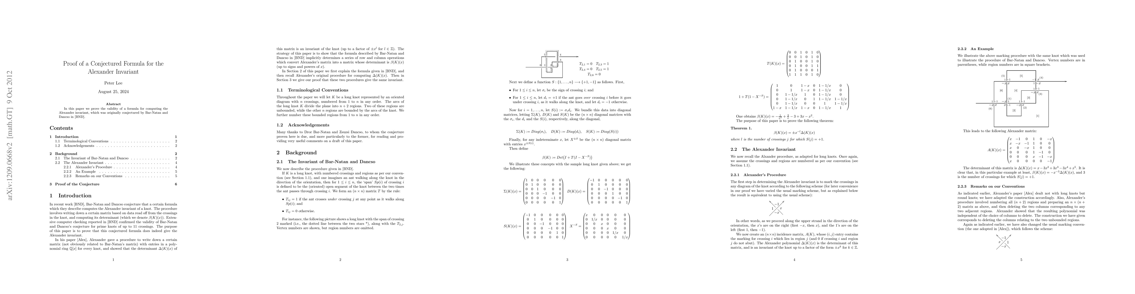 In this paper we prove the validity of a formula for computing the Alexander invariant which was originally conjectured by Bar-Natan and Dancso in [BND].