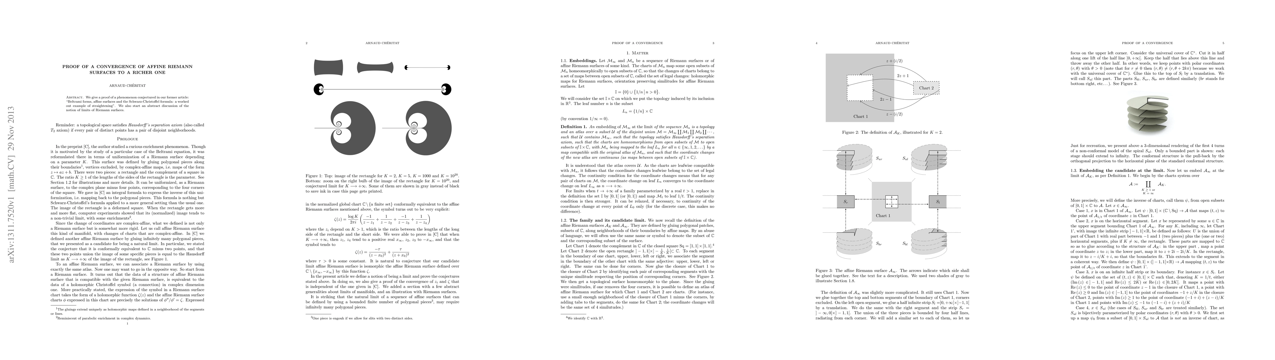 This paper proves the convergence of affine Riemann surfaces to a richer one, building on a conjecture from a previous work. It also initiates a broader discussion on the limits of Riemann surfaces.