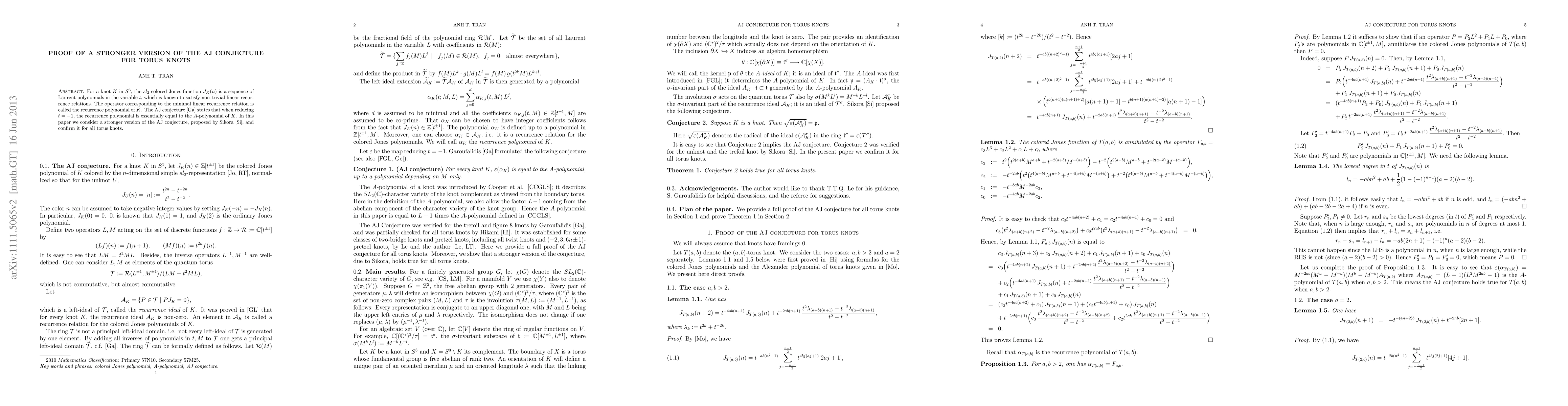 For a knot $K$ in $S^3$, the $sl_2$-colored Jones function $J_K(n)$ is a sequence of Laurent polynomials in the variable $t$, which is known to satisfy non-trivial linear recurrence relations. The operator corresponding to the minimal linear recurrence relation is called the recurrence polynomial of $K$. The AJ conjecture \cite{Ga04} states that when reducing $t=-1$, the recurrence polynomial is essentially equal to the $A$-polynomial of $K$. In this paper we consider a stronger version of the AJ conjecture, proposed by Sikora \cite{Si}, and confirm it for all torus knots.